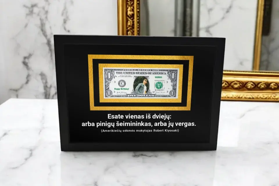 3D rėmelis su pinigais – tai moderni ir kūrybiška interjero detalė, kurioje eksponuojama tikroviška pinigų imitacija arba su pinigais susijusi simbolika. Šis rėmelis išsiskiria gylio ir dimensijos pojūčiu, sukurtu 3D dizaino technologijomis, todėl atrodo itin realistiškai ir traukia dėmesį.