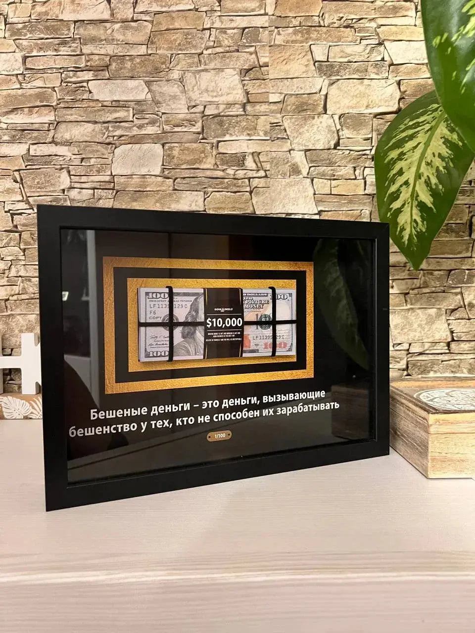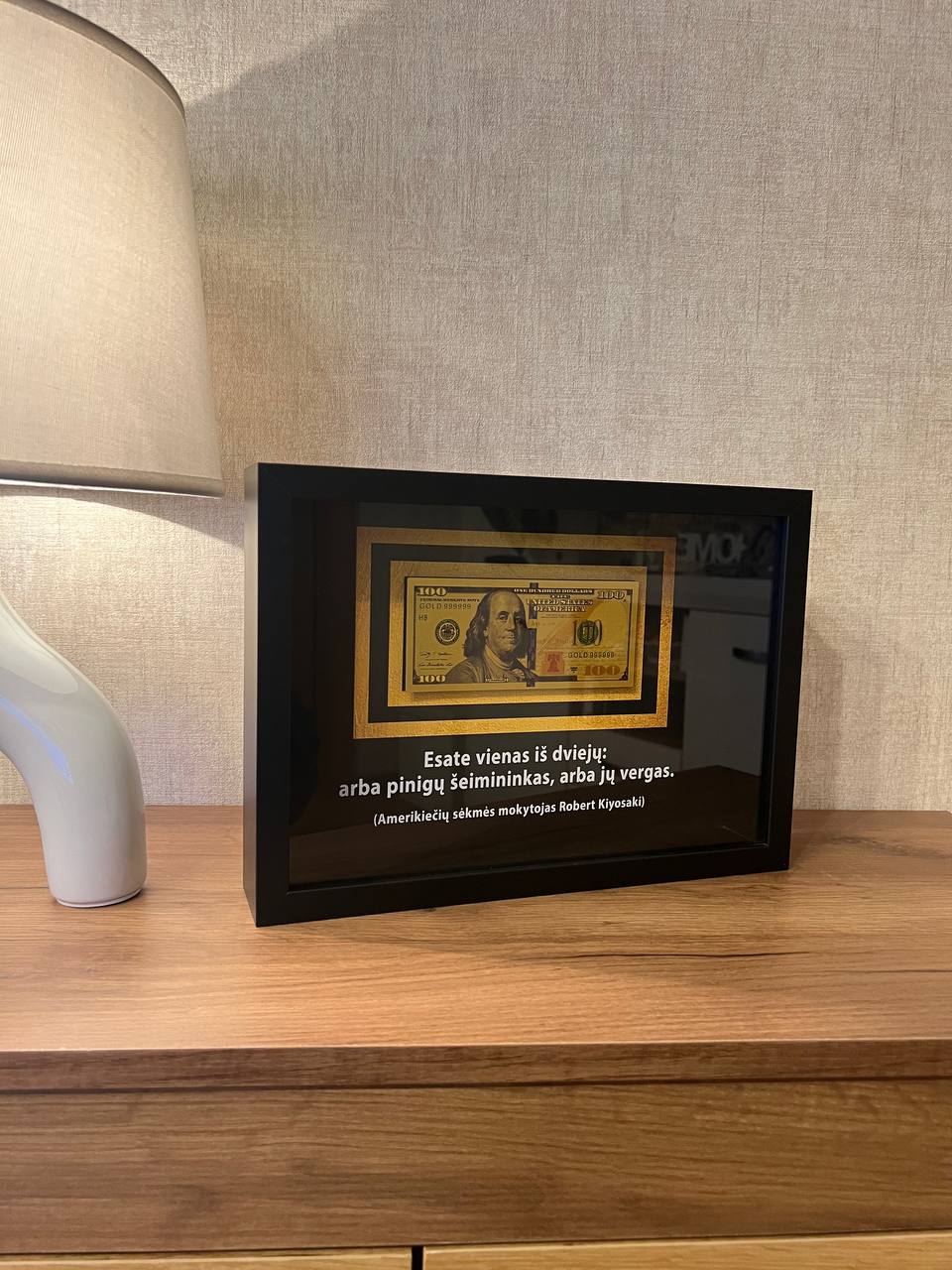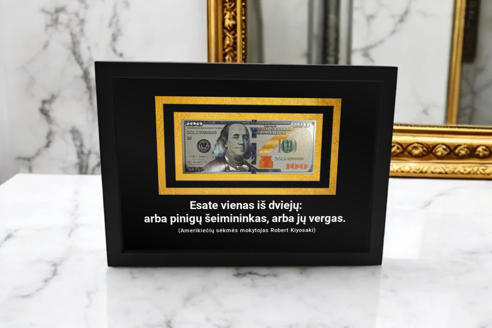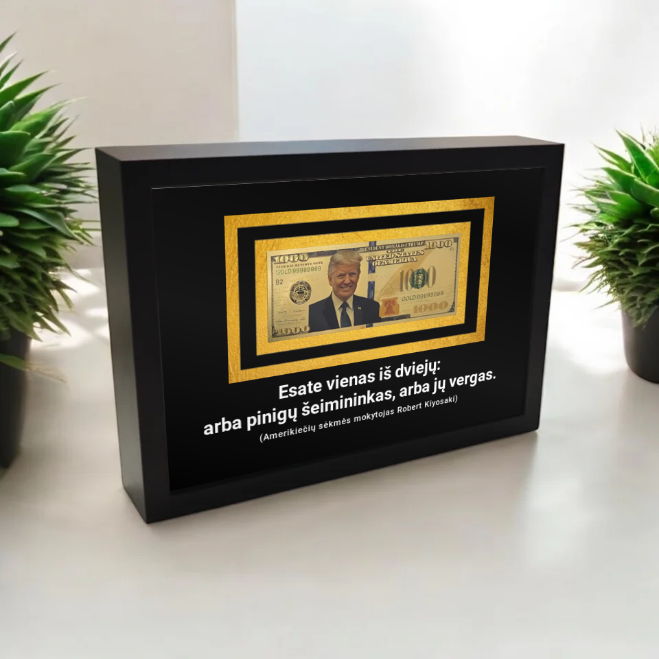 3D rėmelis su pinigais – tai moderni ir kūrybiška interjero detalė, kurioje eksponuojama tikroviška pinigų imitacija arba su pinigais susijusi simbolika. Šis rėmelis išsiskiria gylio ir dimensijos pojūčiu, sukurtu 3D dizaino technologijomis, todėl atrodo itin realistiškai ir traukia dėmesį.