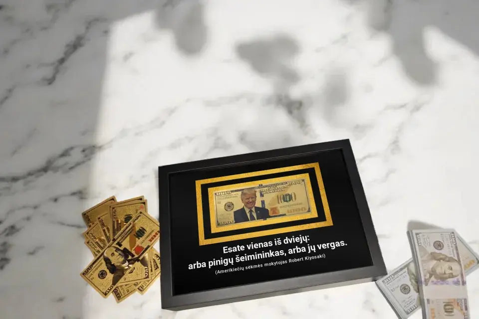 3D rėmelis su pinigais – tai moderni ir kūrybiška interjero detalė, kurioje eksponuojama tikroviška pinigų imitacija arba su pinigais susijusi simbolika. Šis rėmelis išsiskiria gylio ir dimensijos pojūčiu, sukurtu 3D dizaino technologijomis, todėl atrodo itin realistiškai ir traukia dėmesį.