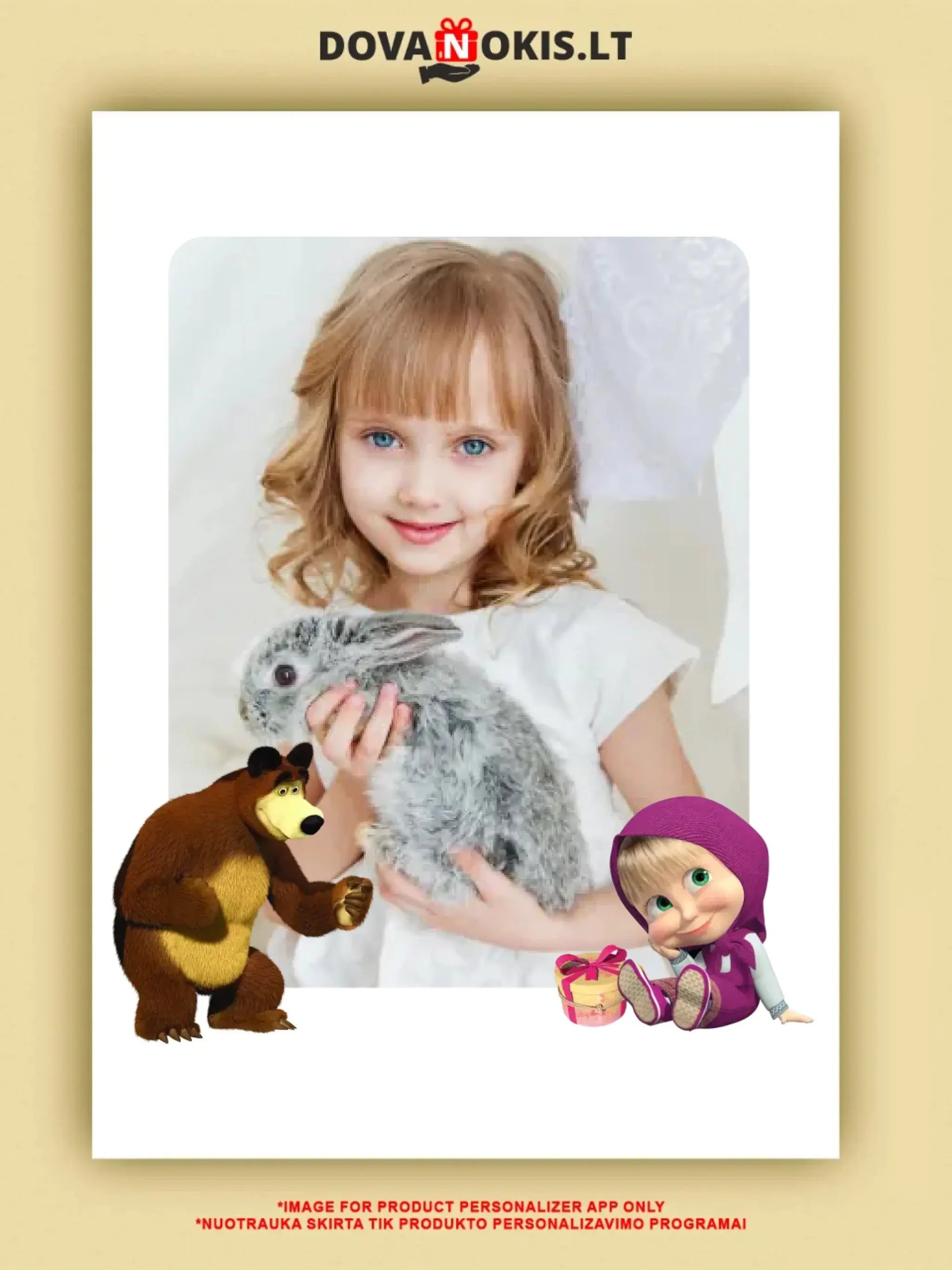 Personalizuotas "Masha ir Lokys" dizaino įrėmintas plakatas su jūsų nuotrauka