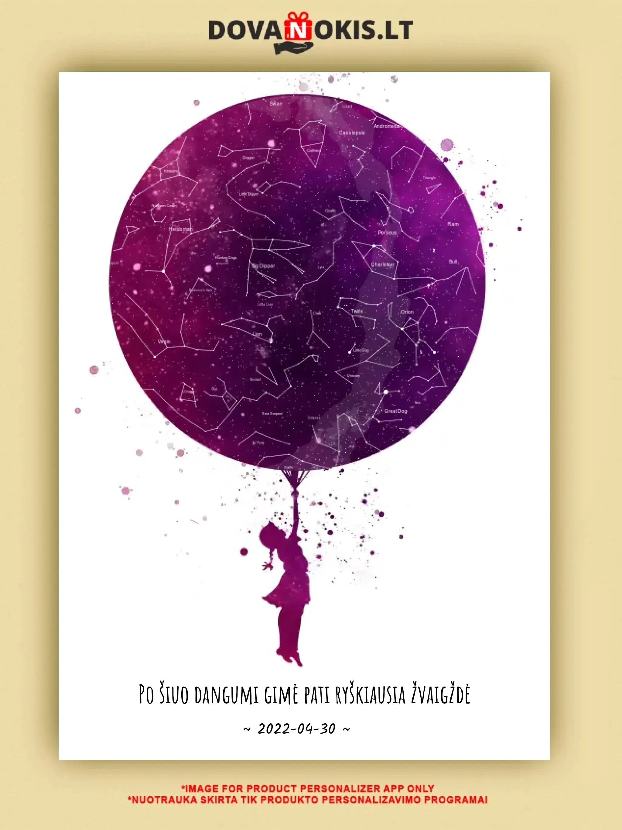 Tai nuotrauka su tikslia žvaigždėto dangaus vieta, kuri buvo virš konkretaus miesto tam tikrą dieną ir tam tikru laiku. Pavyzdžiui, jūsų gimtadienis, pirmasis bučinys, vestuvių diena ar kūdikio gimimas