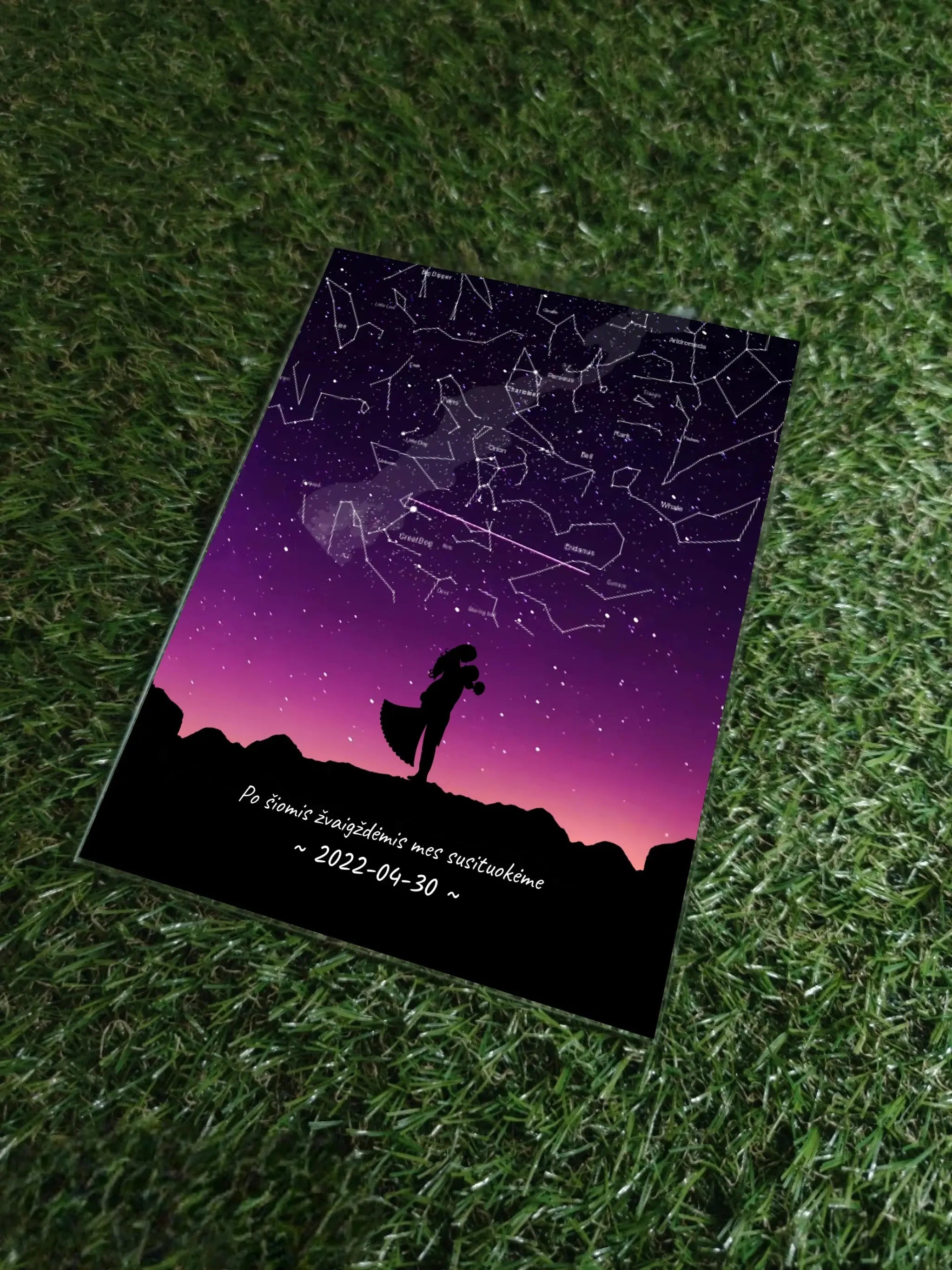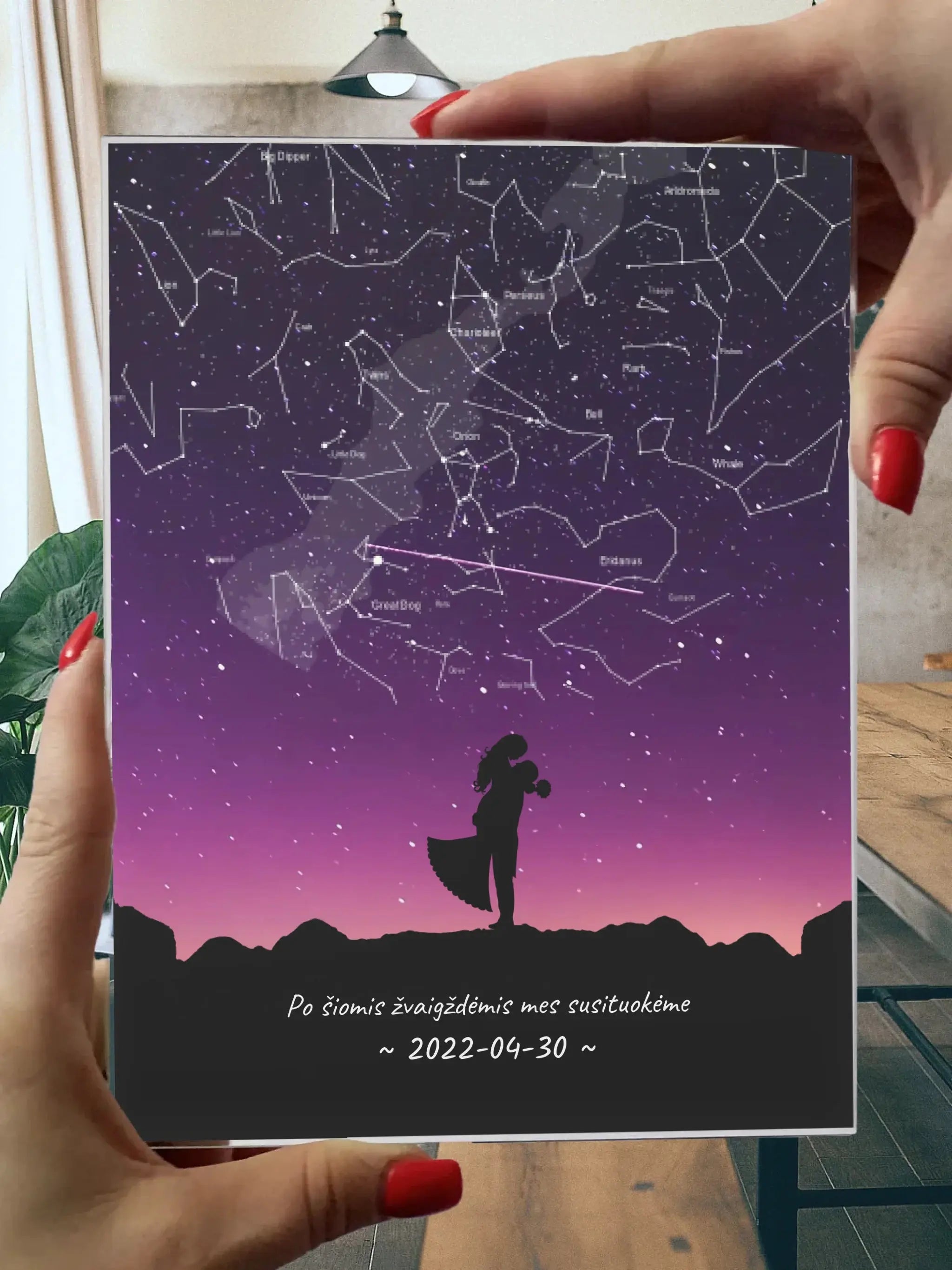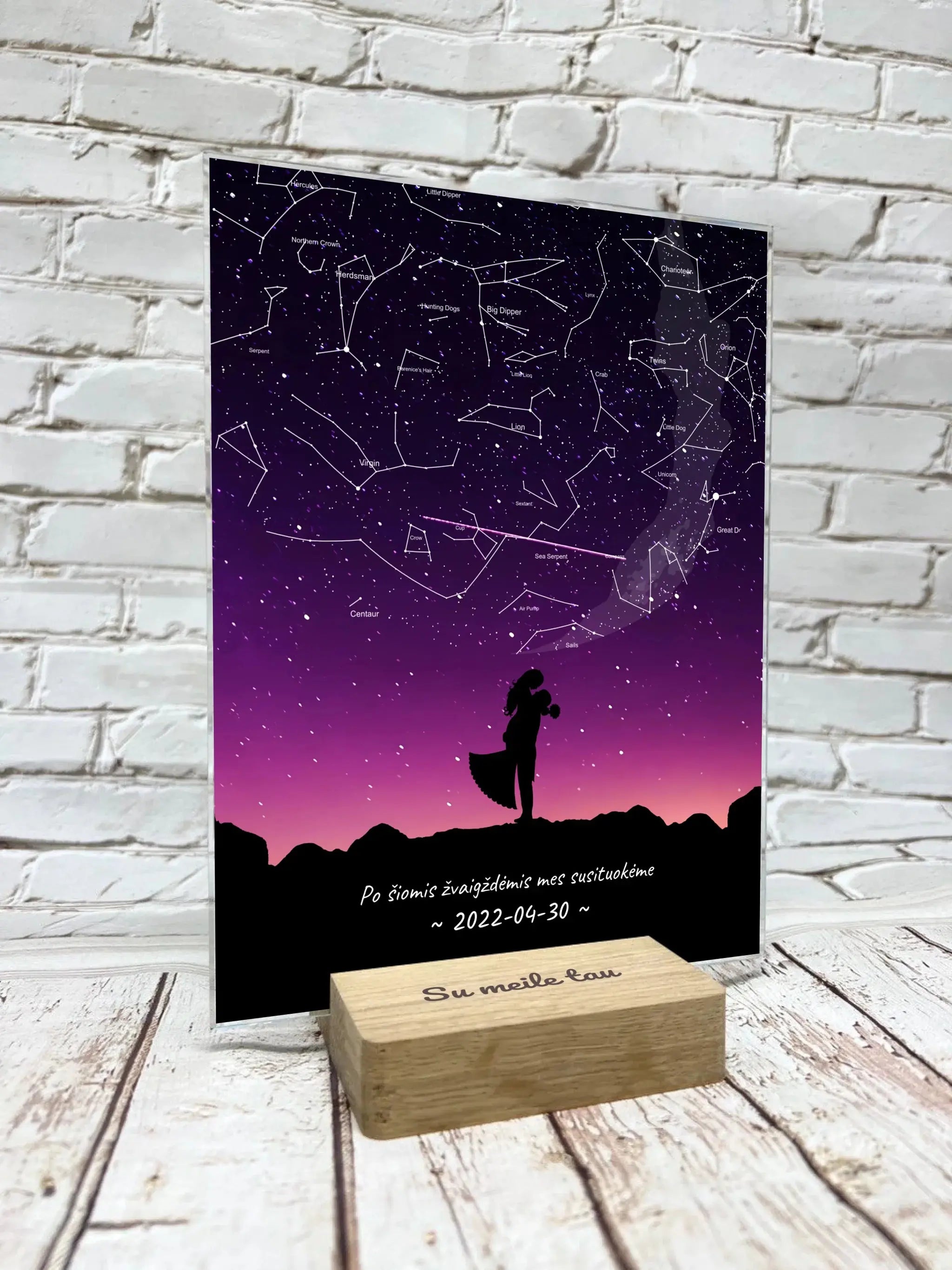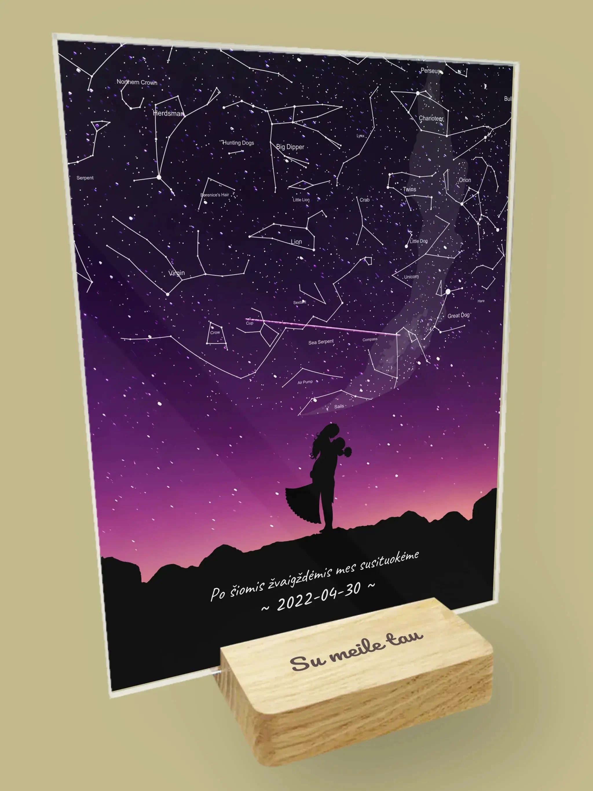 • Personalizuotas žvaigždžių žemėlapis, stiklinis posteris.