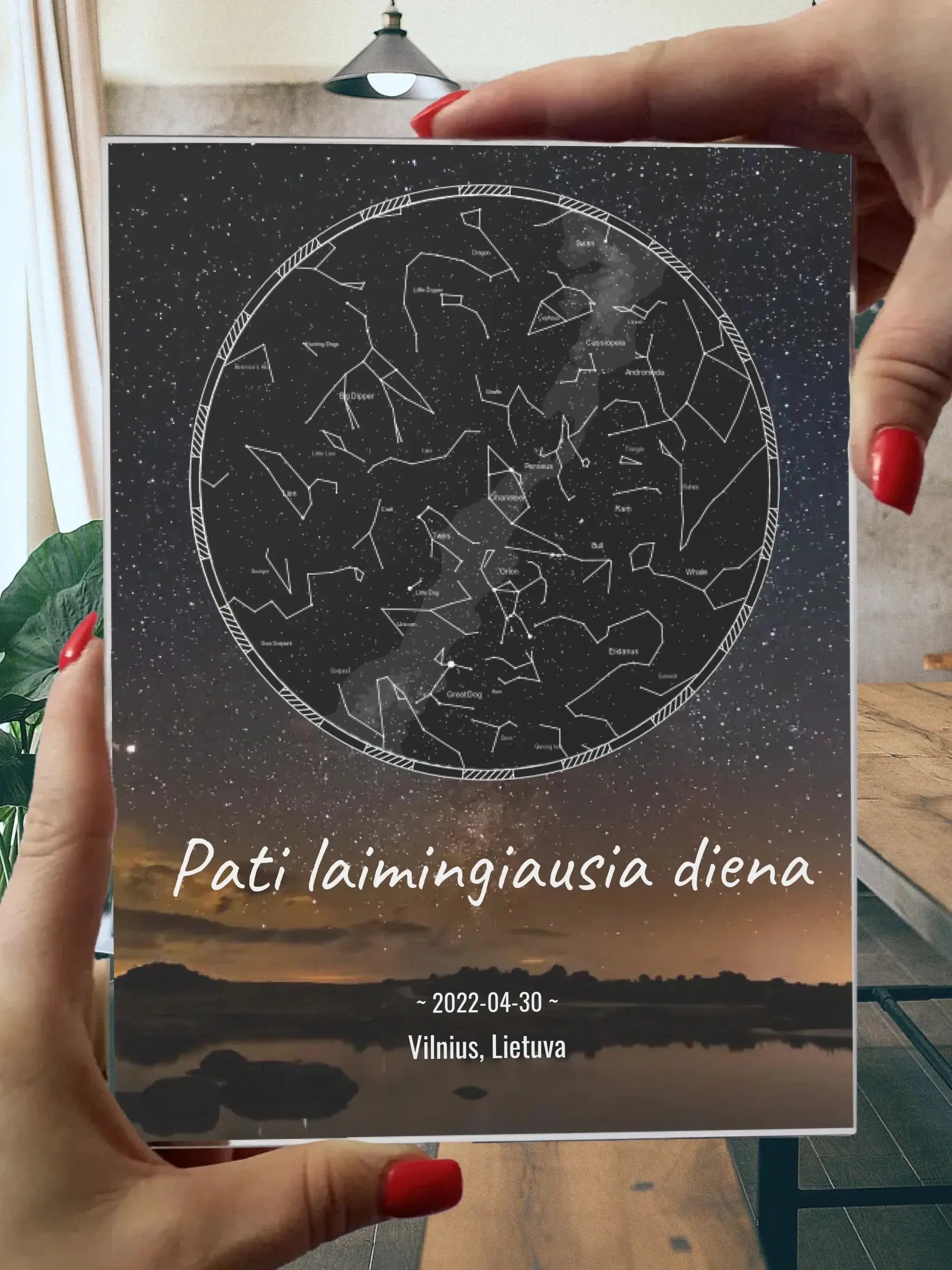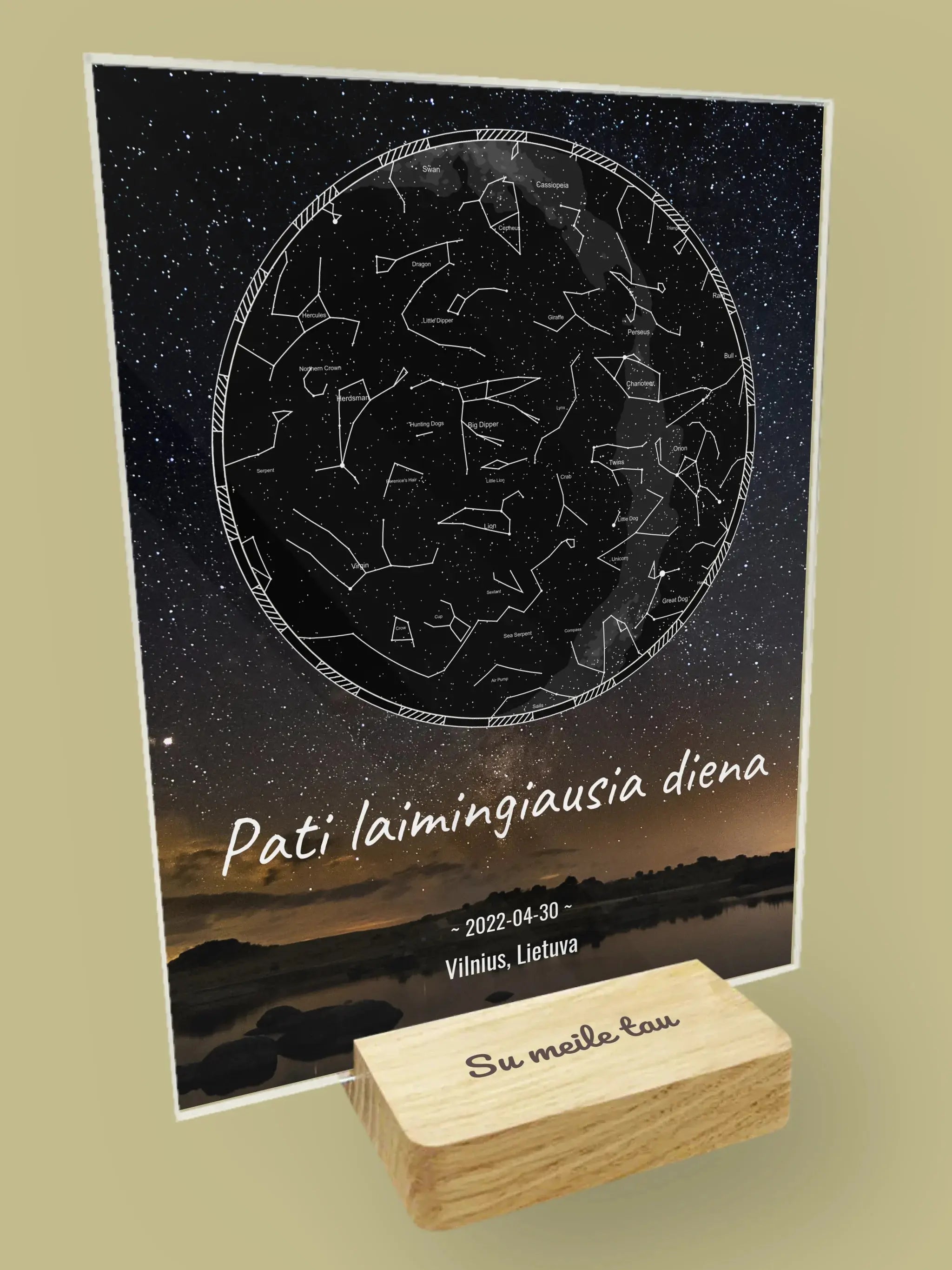 Personalizuotas žvaigždžių žemėlapis, stiklinis posteris. DVNS-017