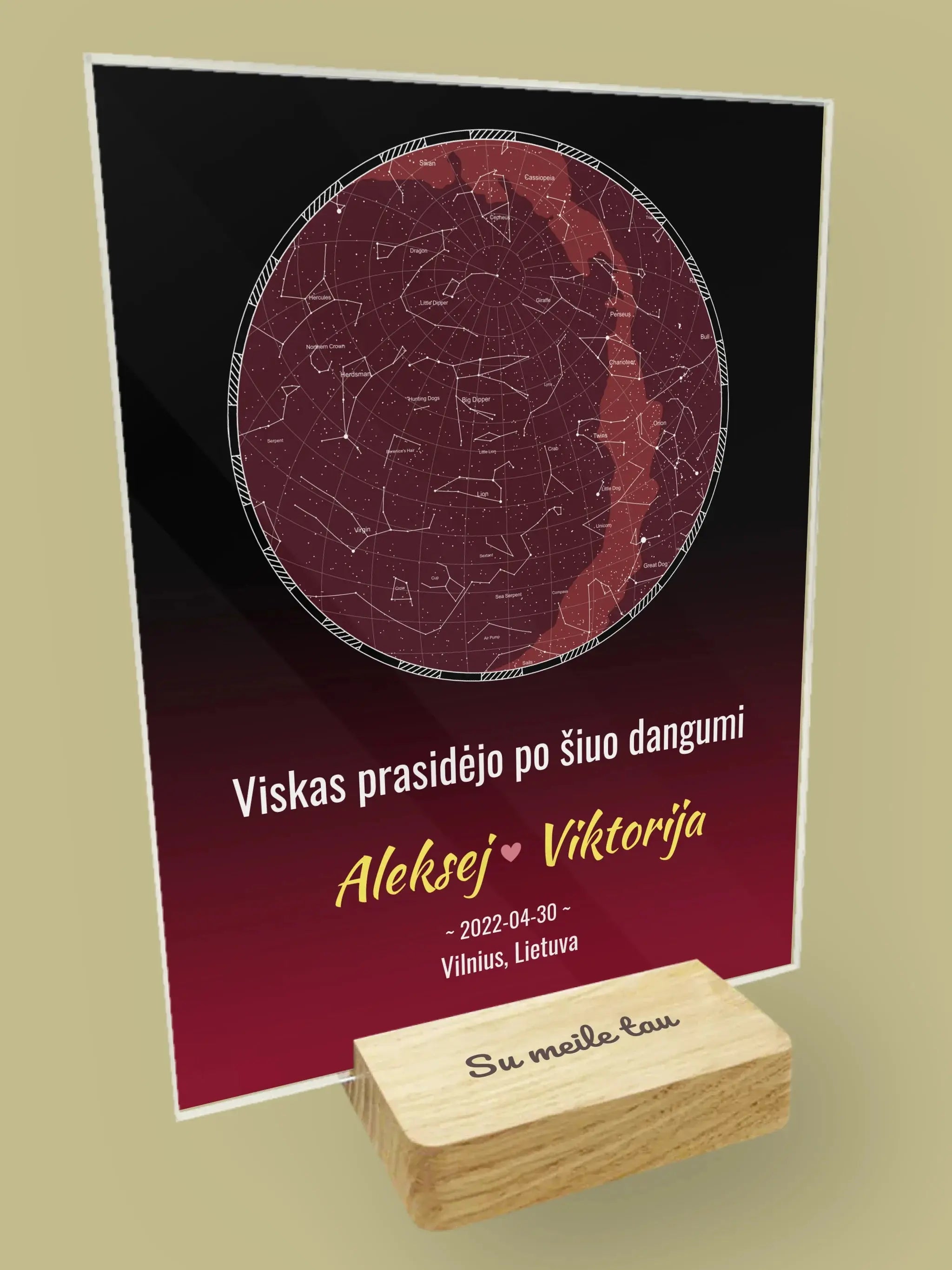 • Personalizuotas žvaigždžių žemėlapis, stiklinis posteris.