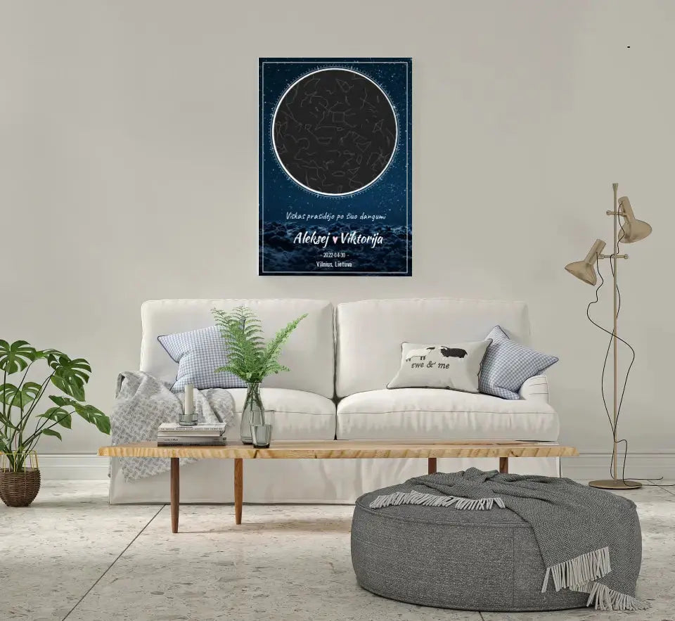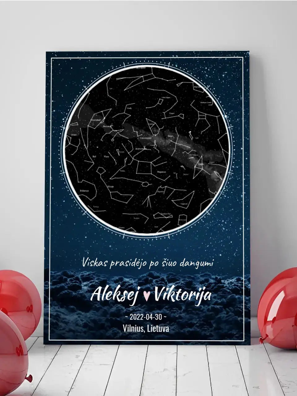 Personalizuotas žvaigždžių žemėlapis ant drobės