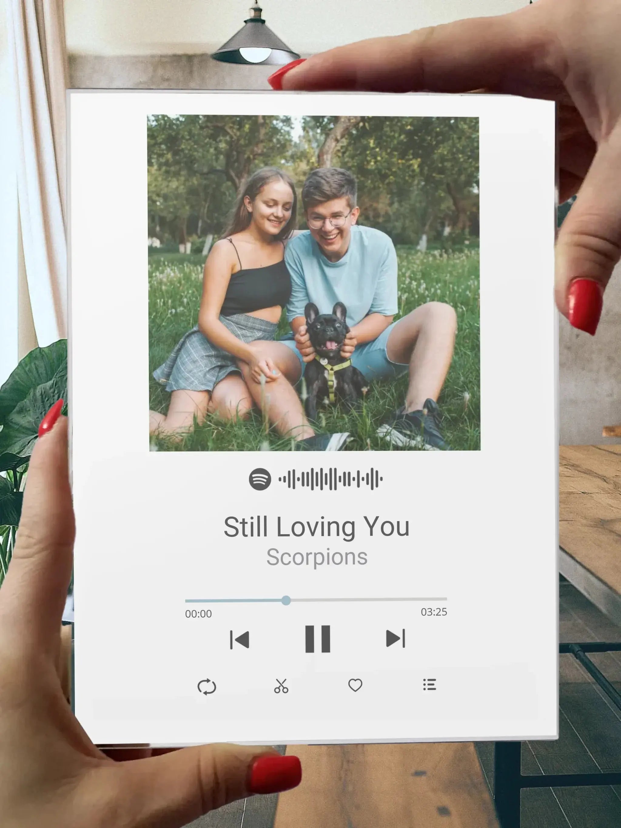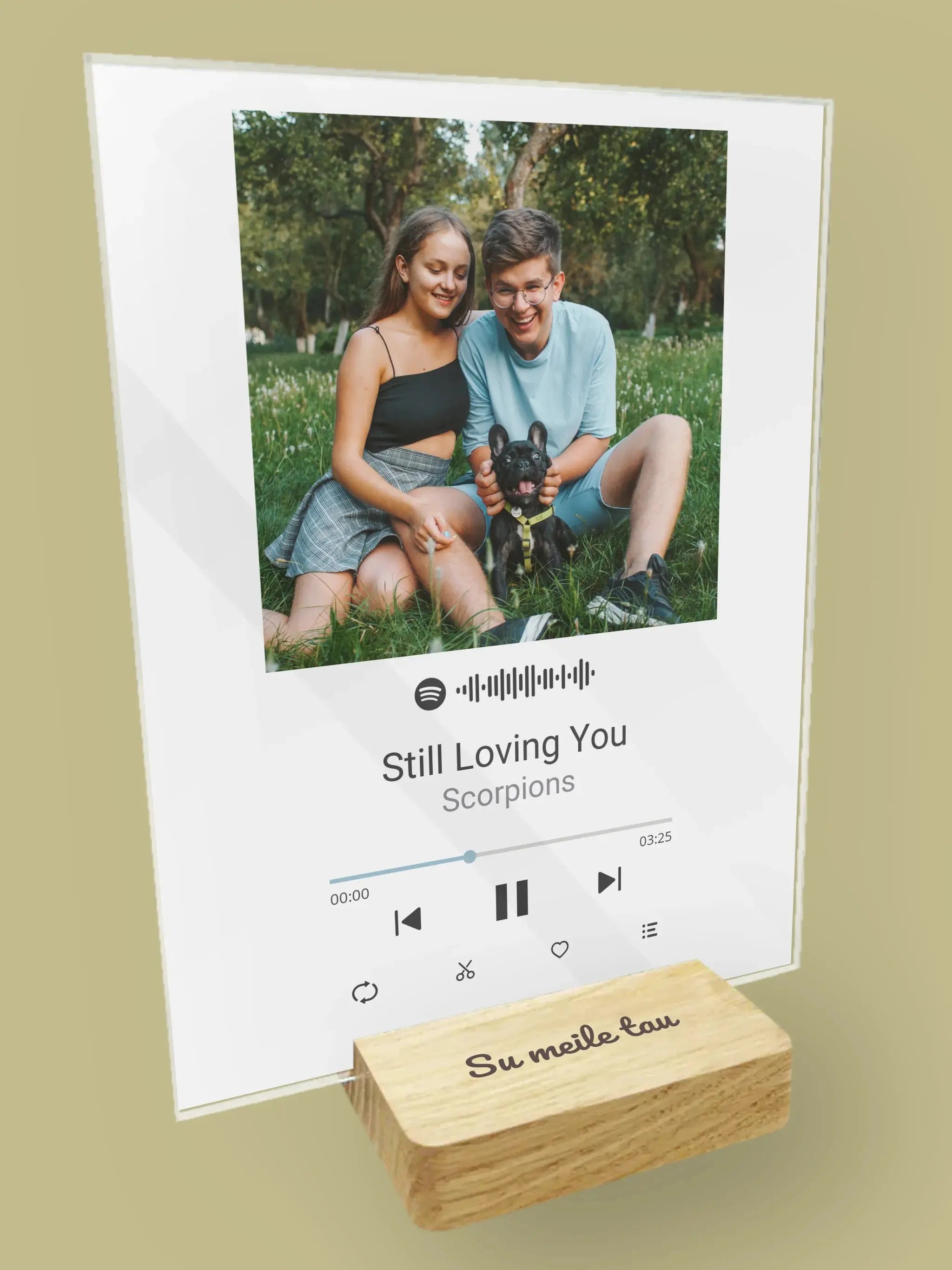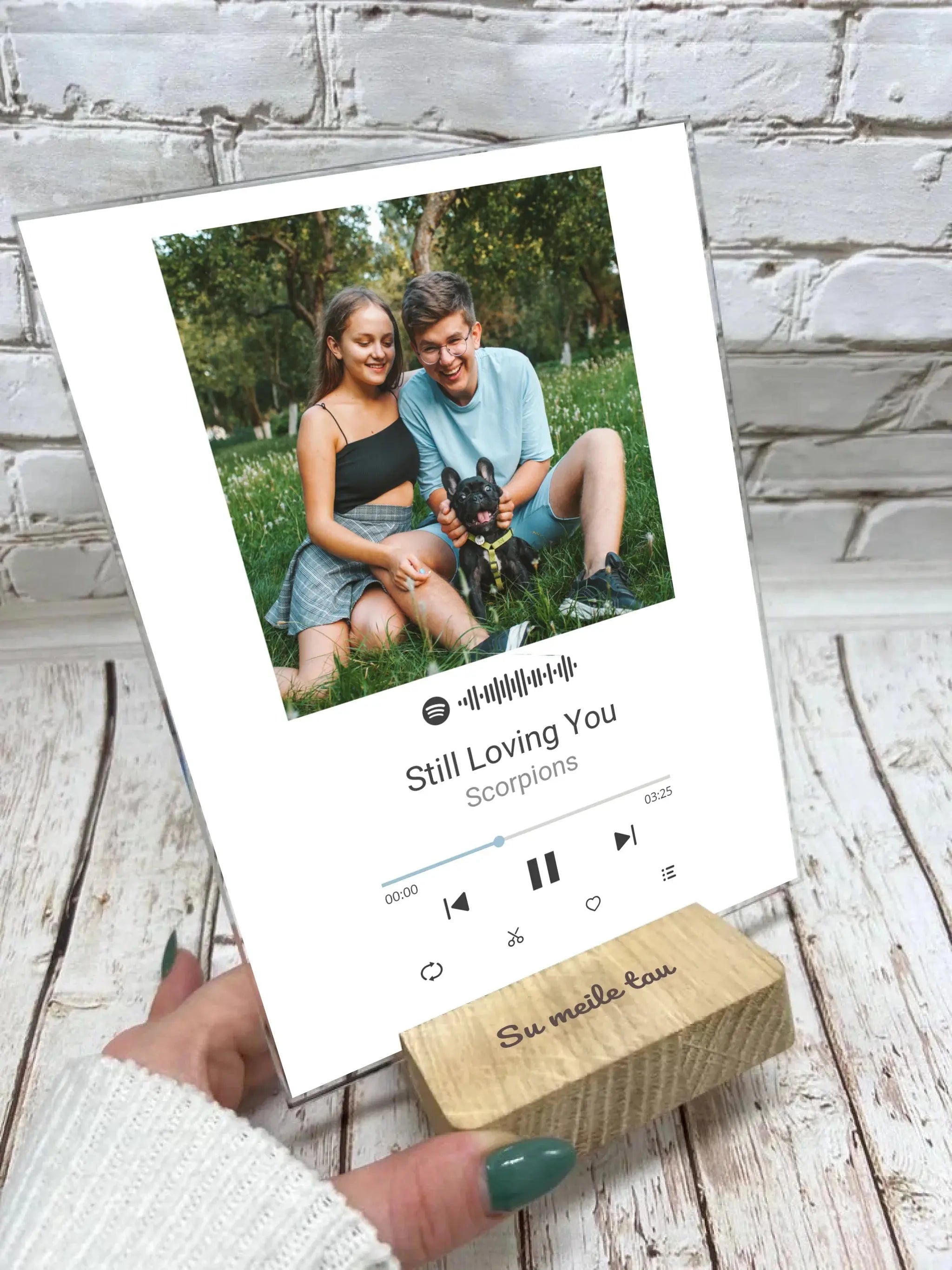 Įamžinkite mėgstamą nuotrauką, pridėkite mylimos dainos pavadinimą ar QR kodą, ir mes sukursime modernų, minimalistinį interjero akcentą, kuris spinduliuos šilumą ir prisiminimus.