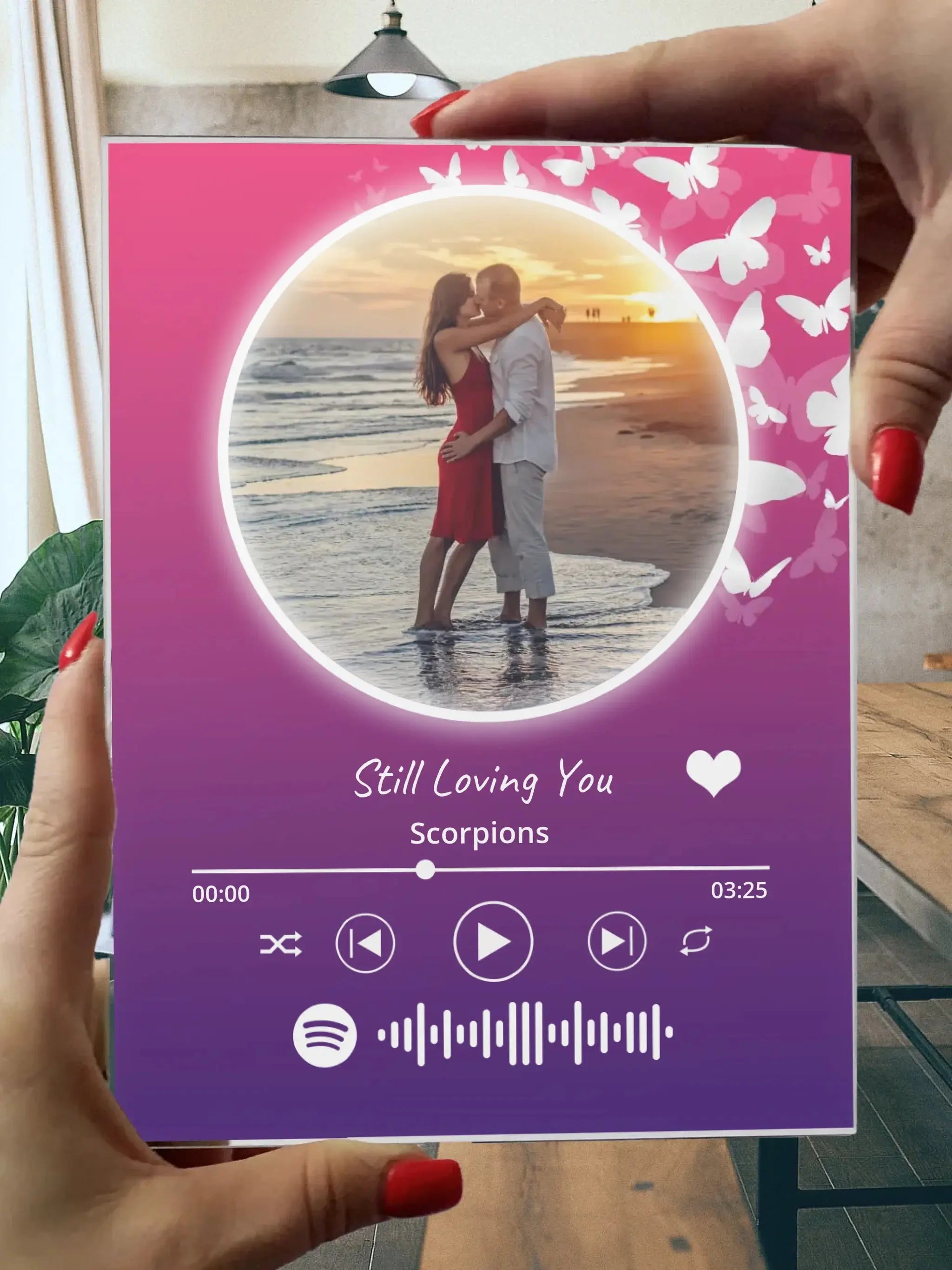 Personalizuotas Lovetify muzikos grotuvo stiklinis posteris su jūsų nuotrauka ir daina