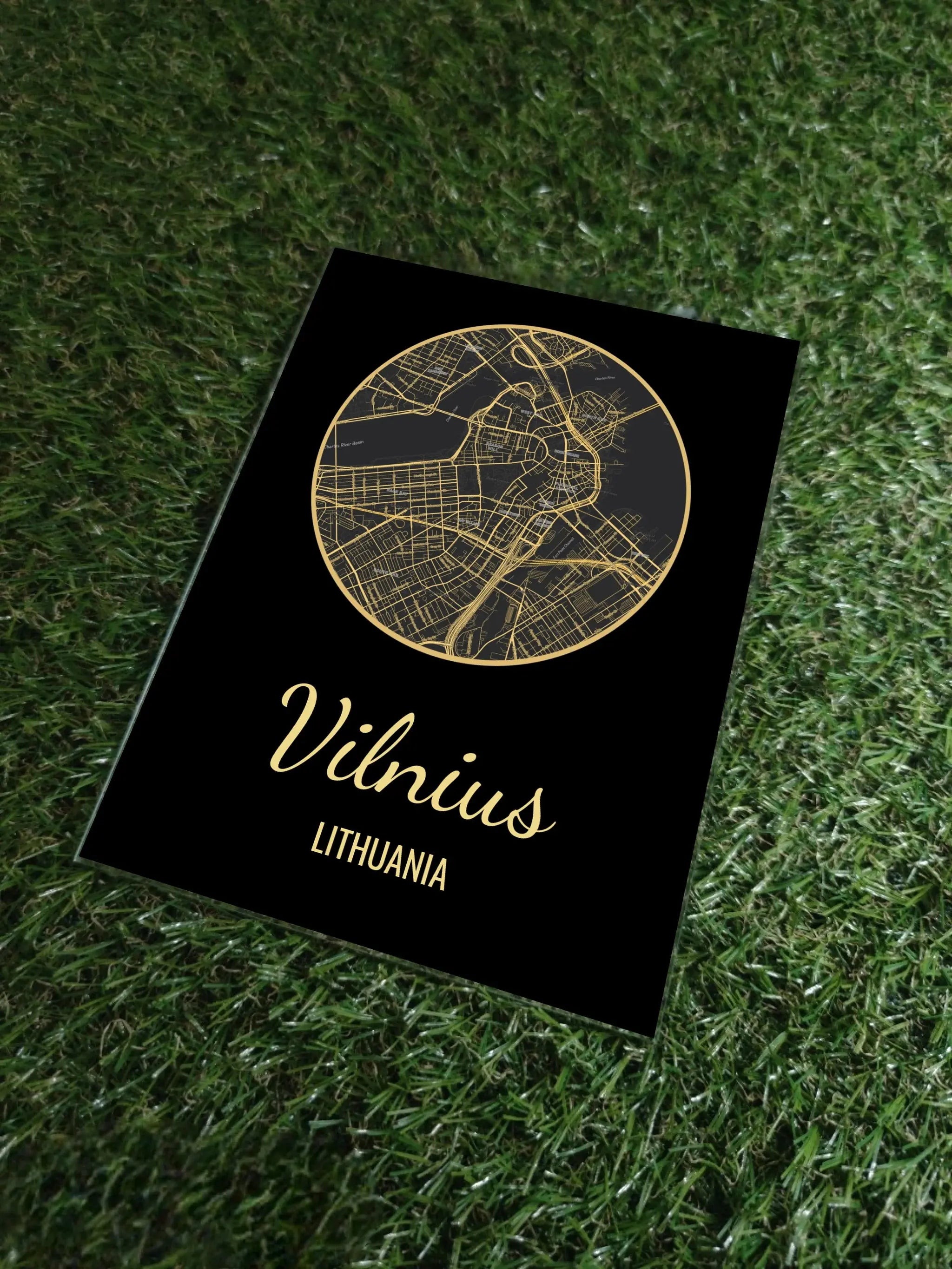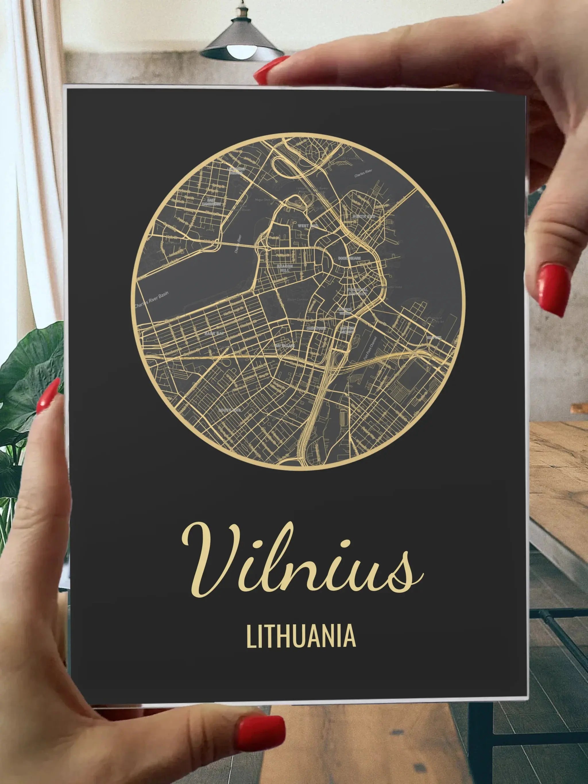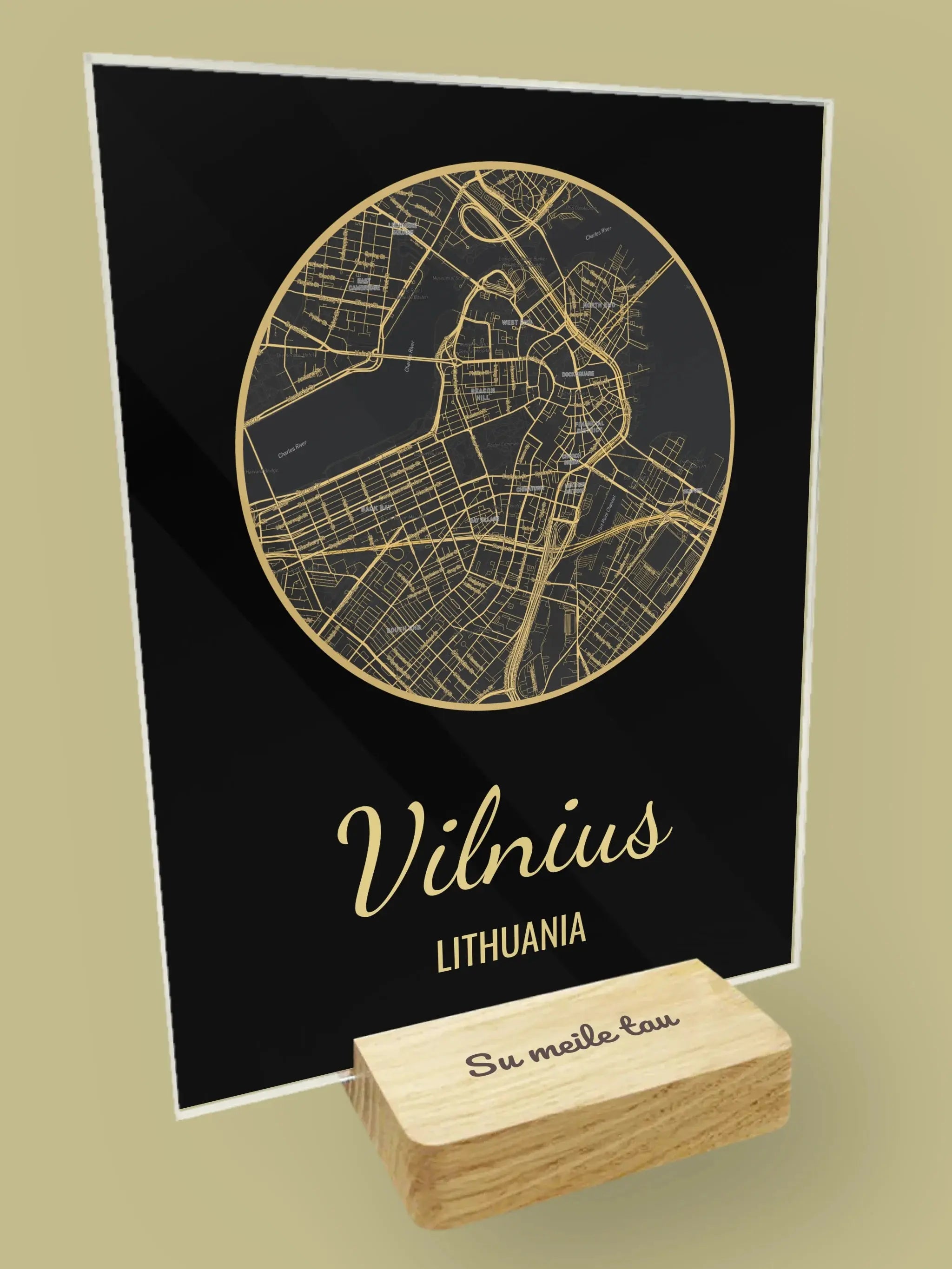 Personalizuotas miesto žemėlapio stiklinis posteris su jūsų pasirinkta vieta
