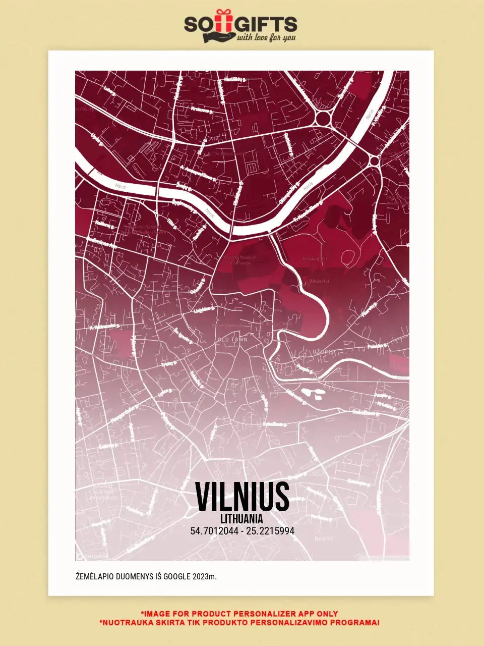 Personalizuotas miesto žemėlapio plakatas su jūsų pasirinkta vieta