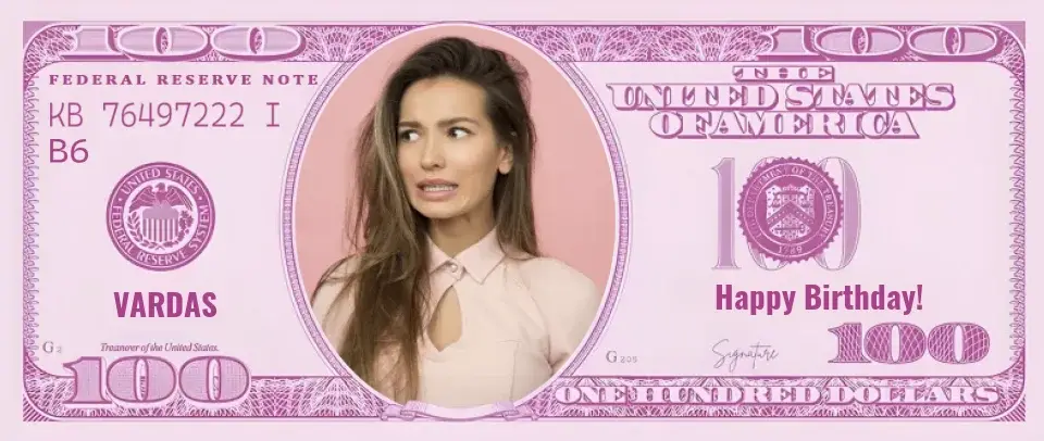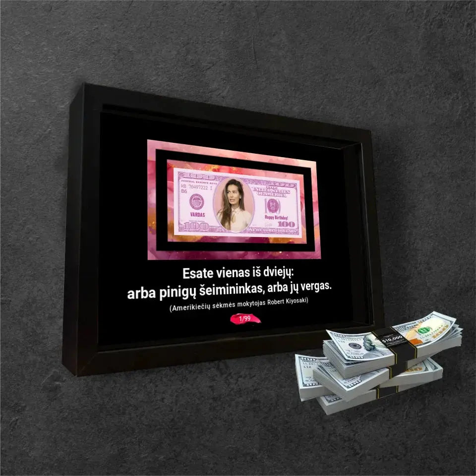 3D pinigų rėmelis su 100 JAV personalizuota rožinė dolerių kupiūra ir jūsų nuotrauka.