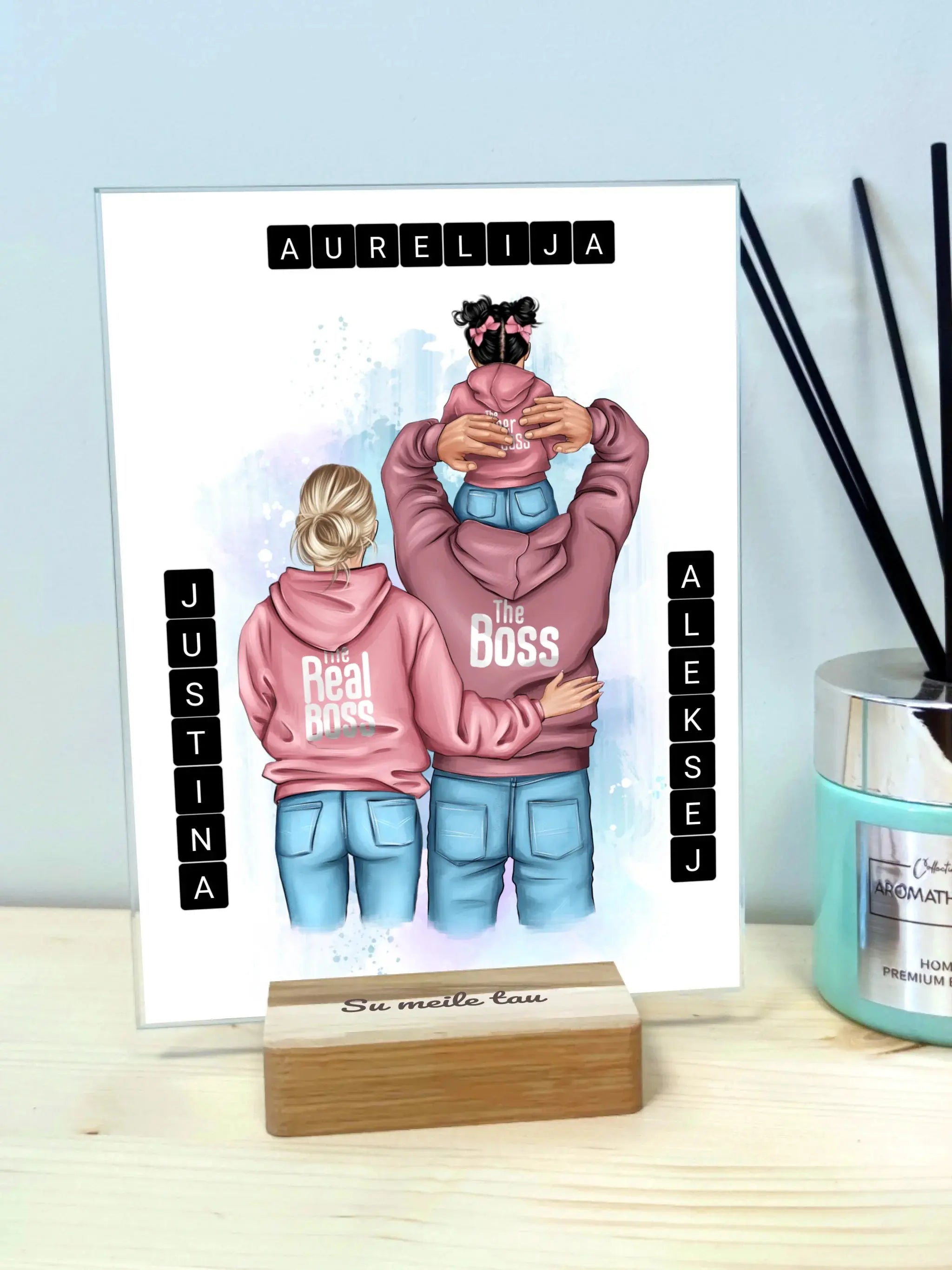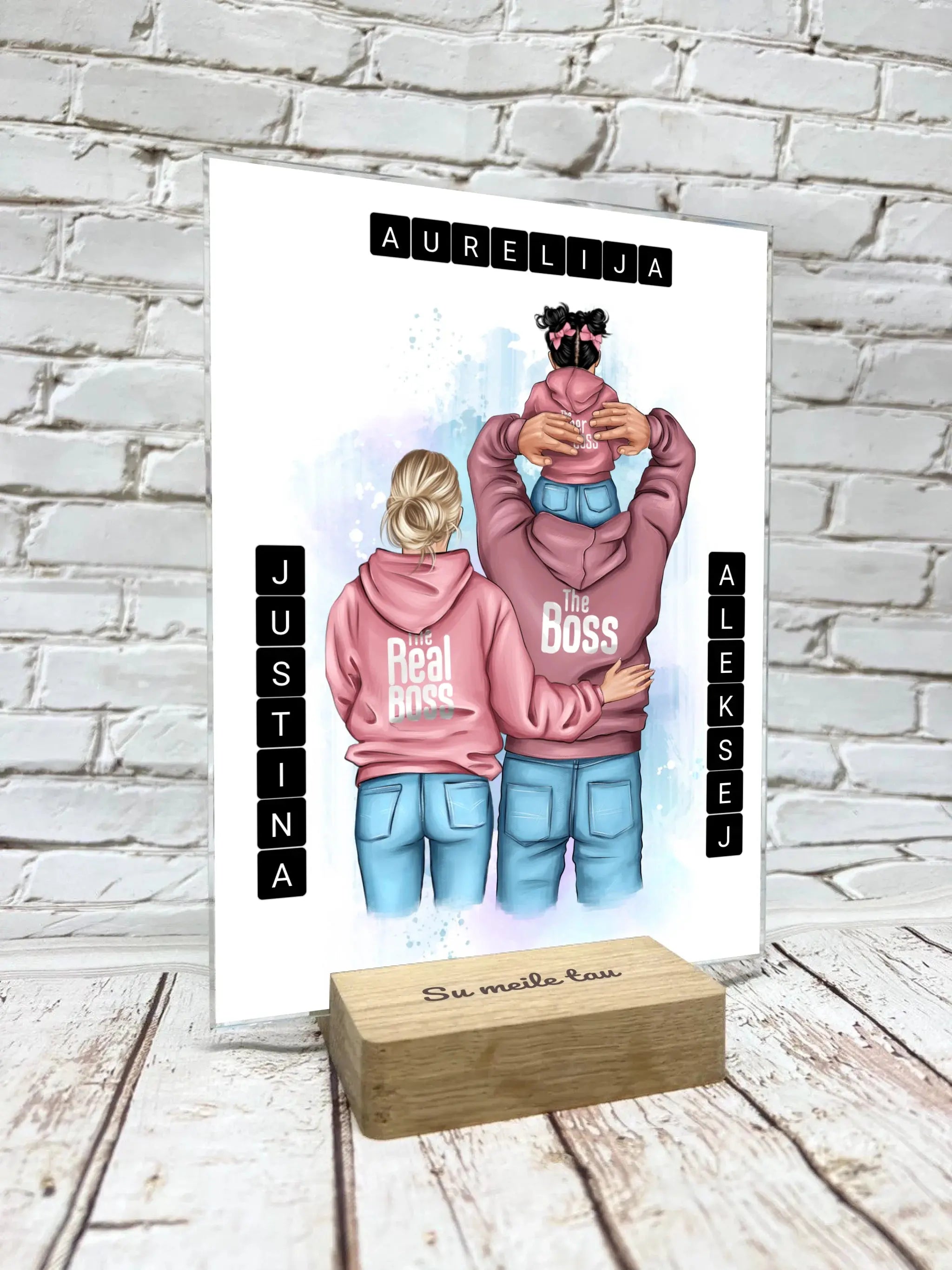 Personalizuotas "Tikra boso šeima" iliustracija su vaiku ant stiklo