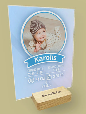 Personalizuota Berniuko gimimo metrika ant stiklo