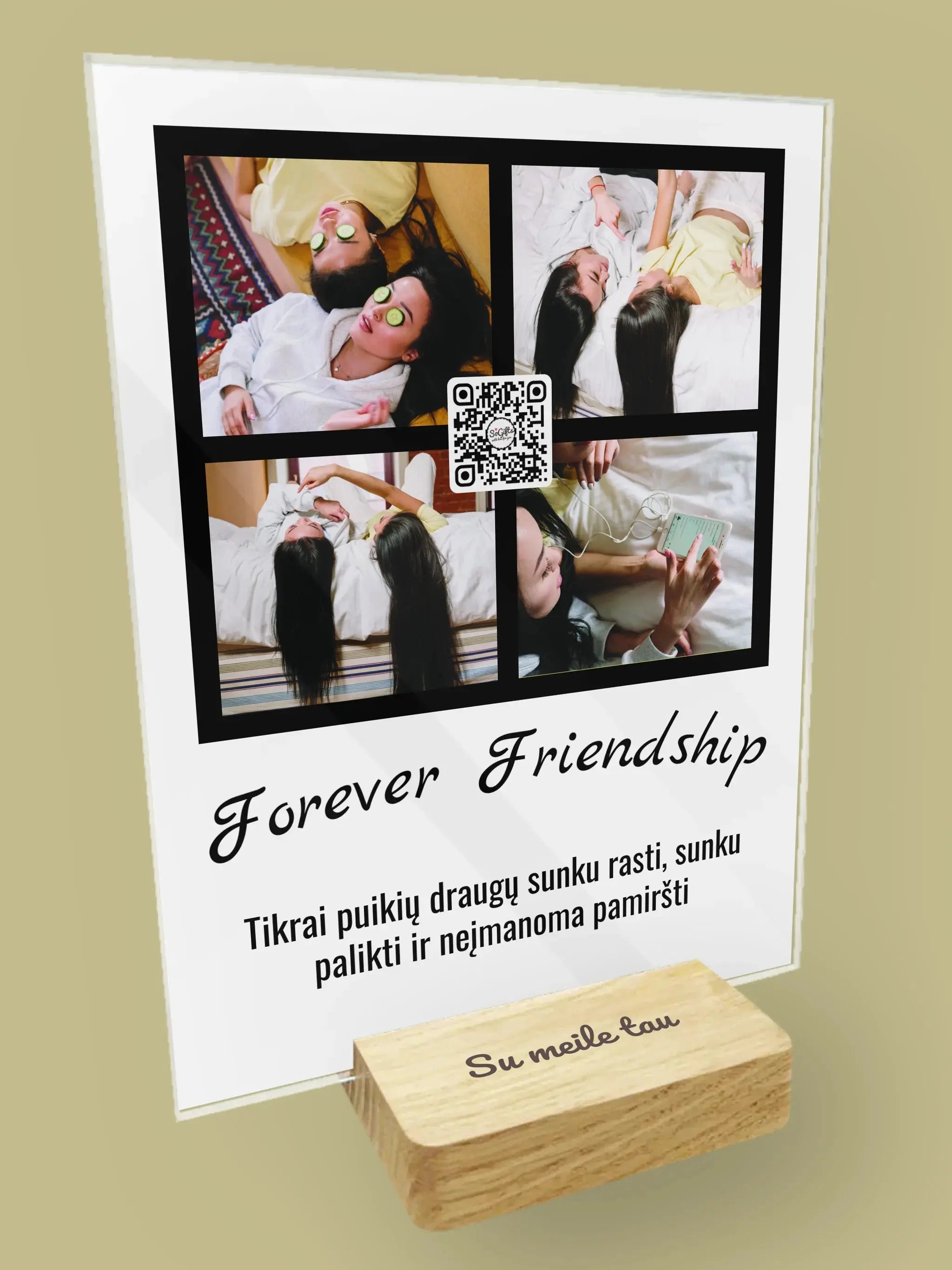 Personalizuotas "Forever Friendship" dizaino kūrinys ant stiklo su jūsų nuotraukomis ir tekstu