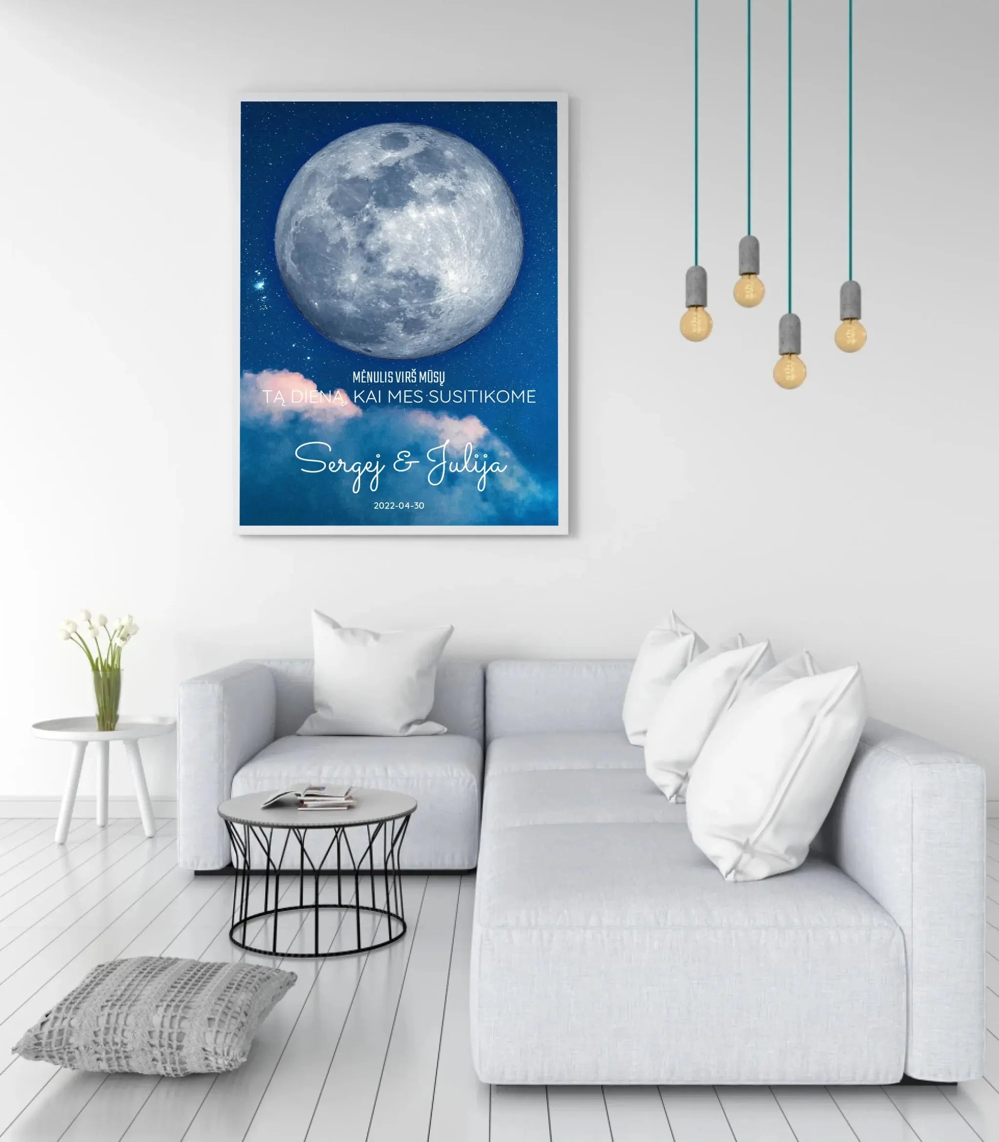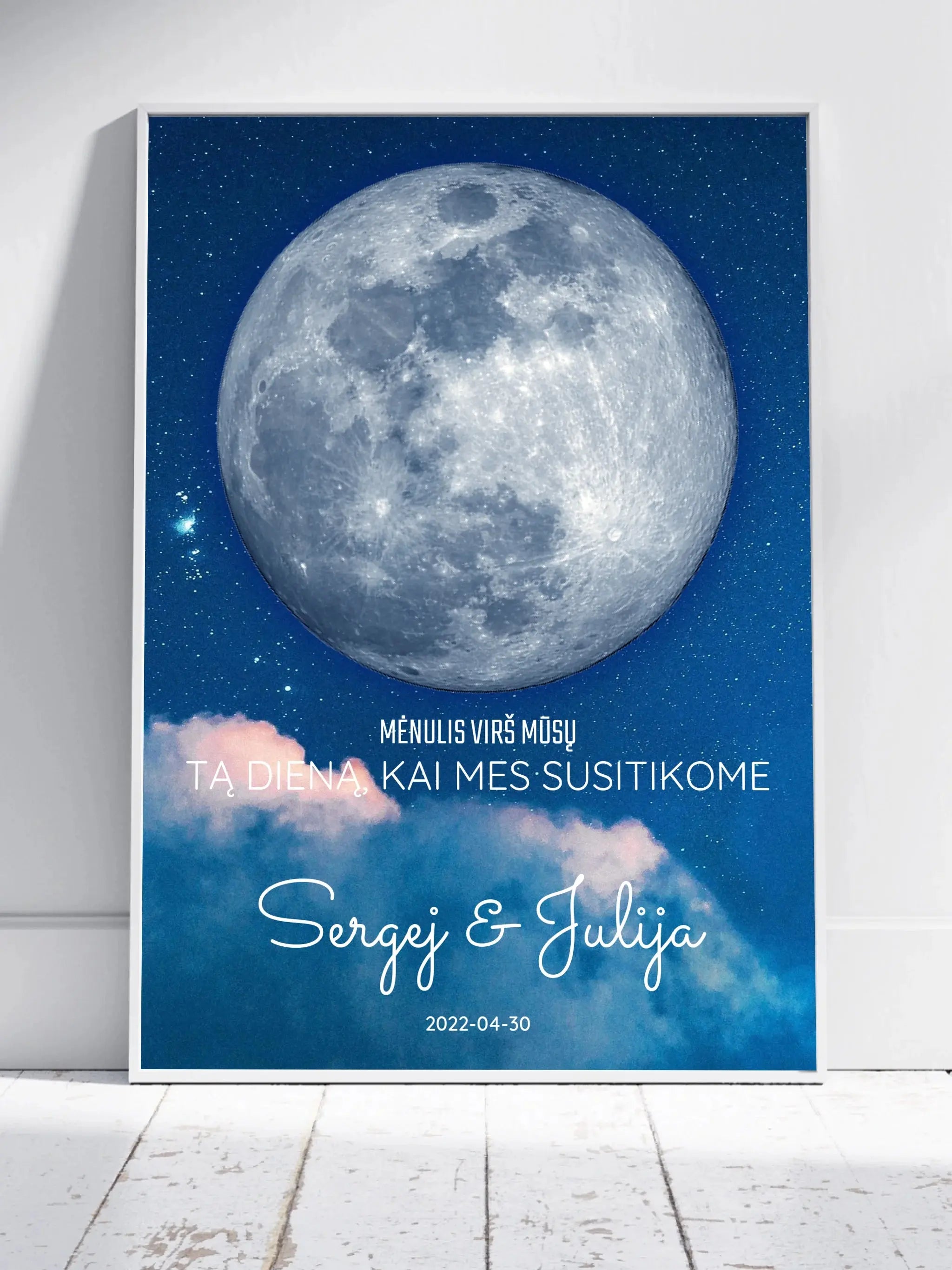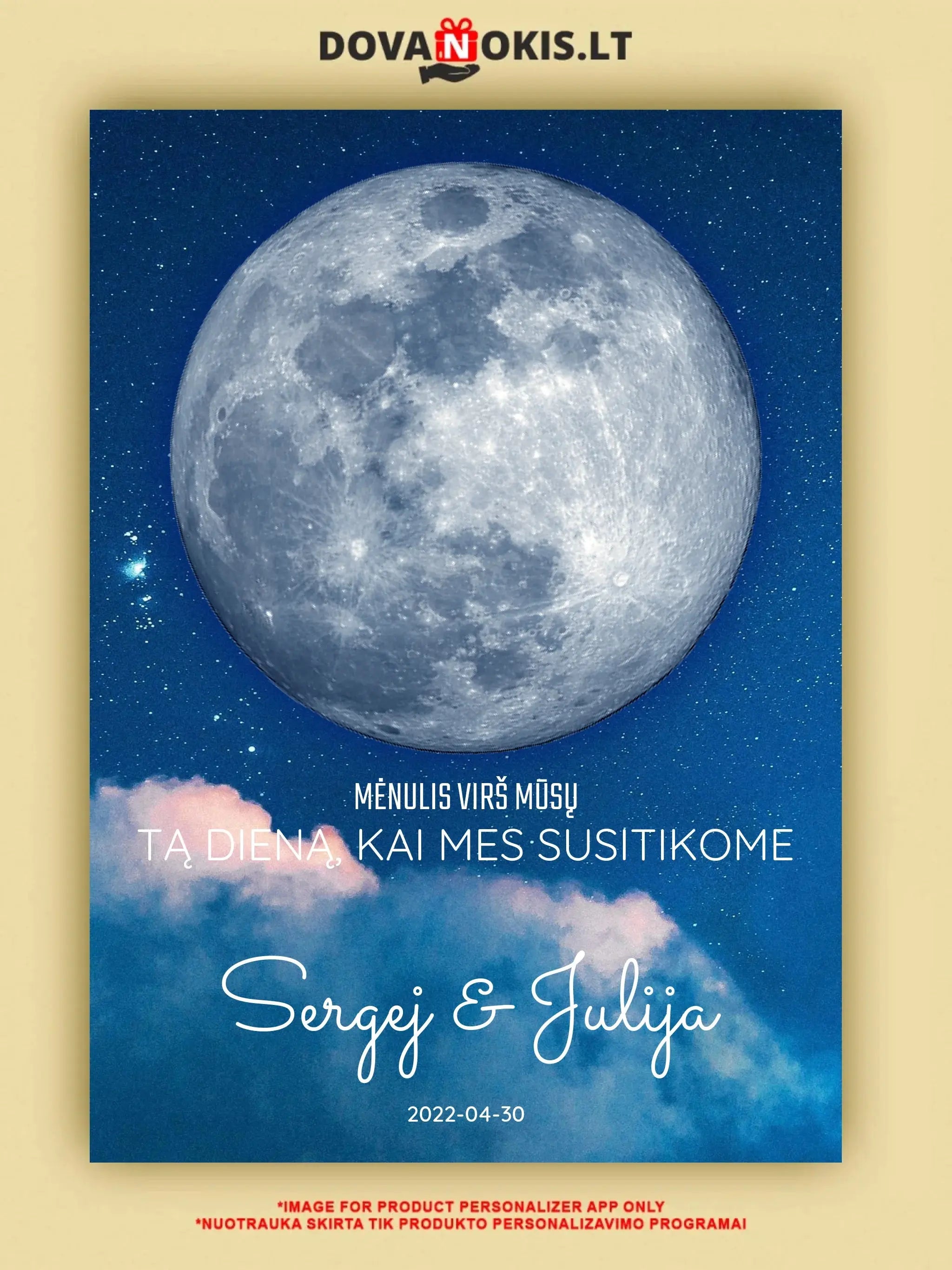 Personalizuotas mėnulio fazės plakatas, pritaikytas pagal datą ir vietą MNFZ-002