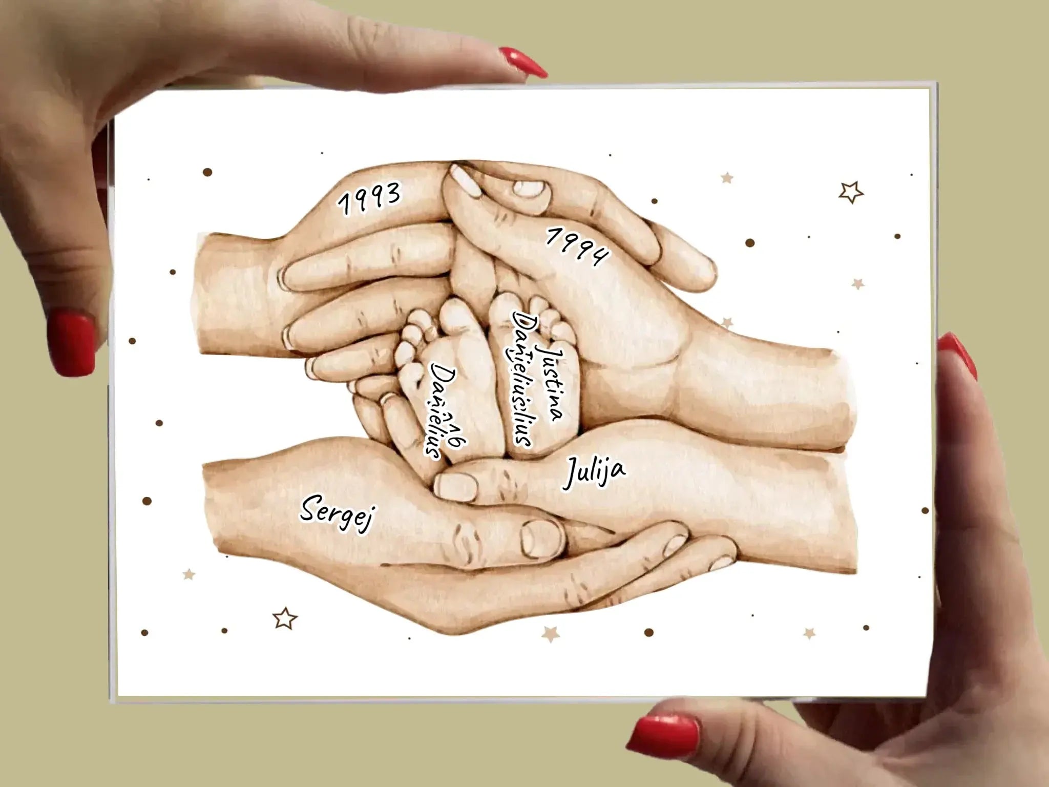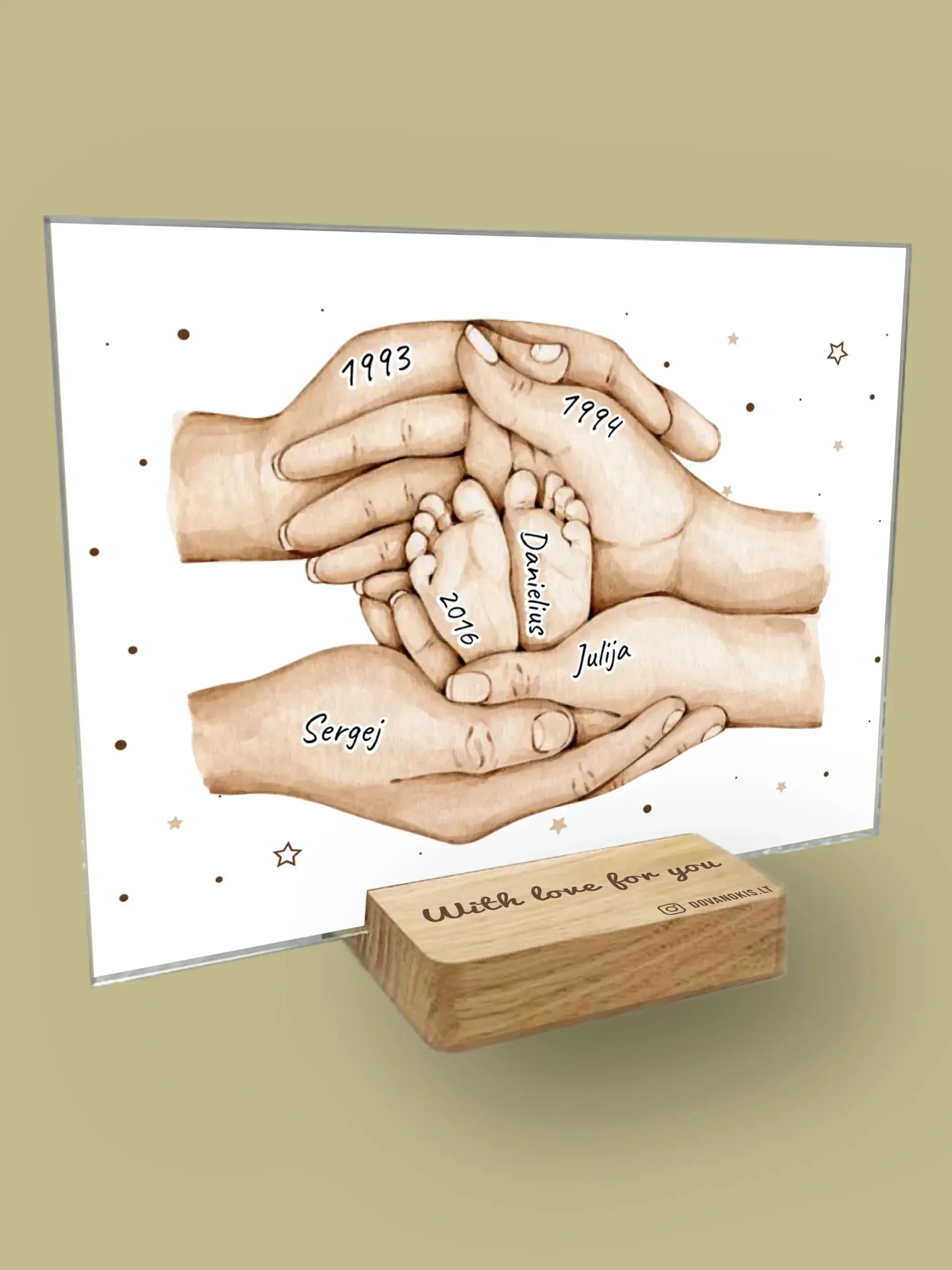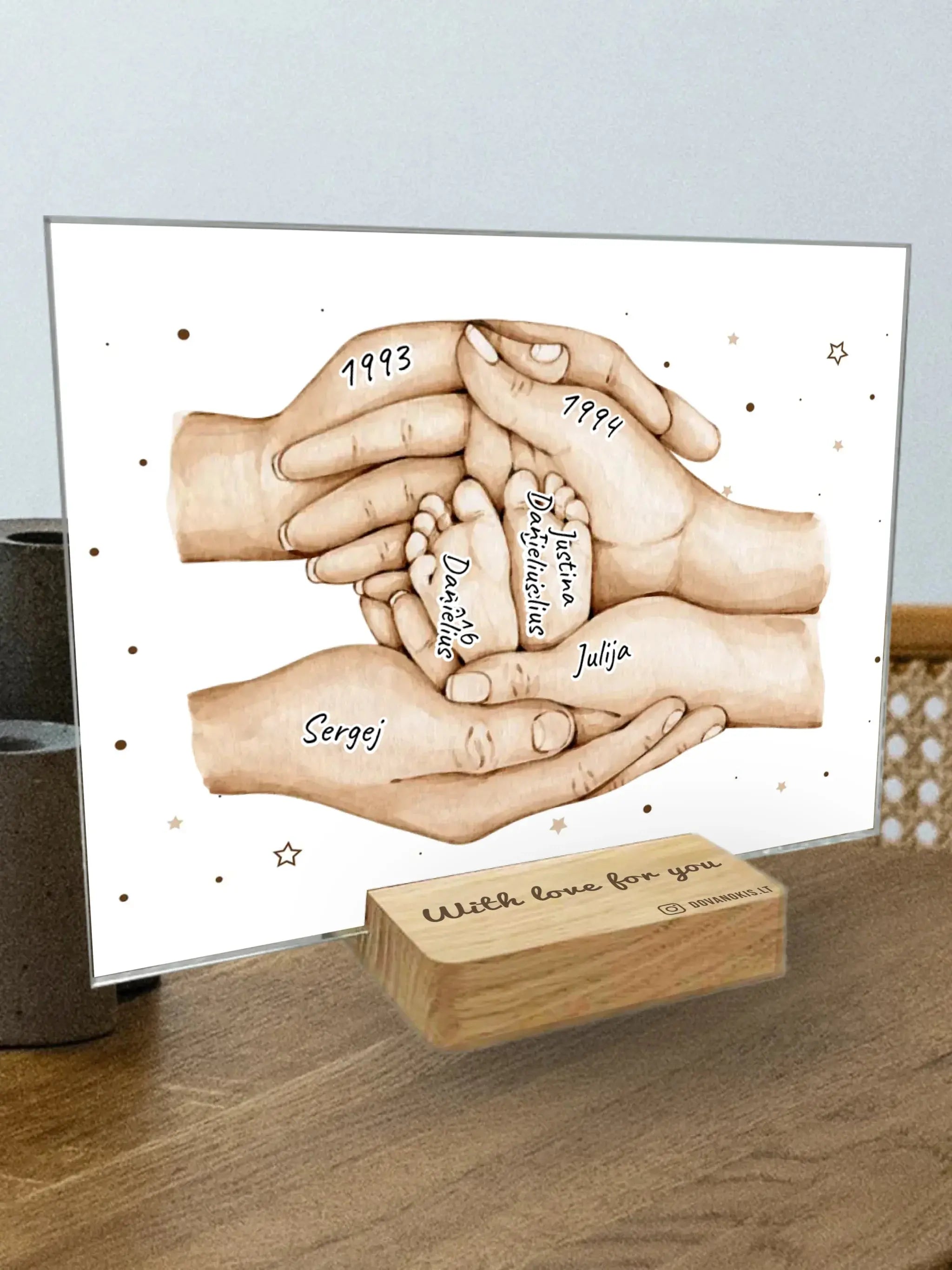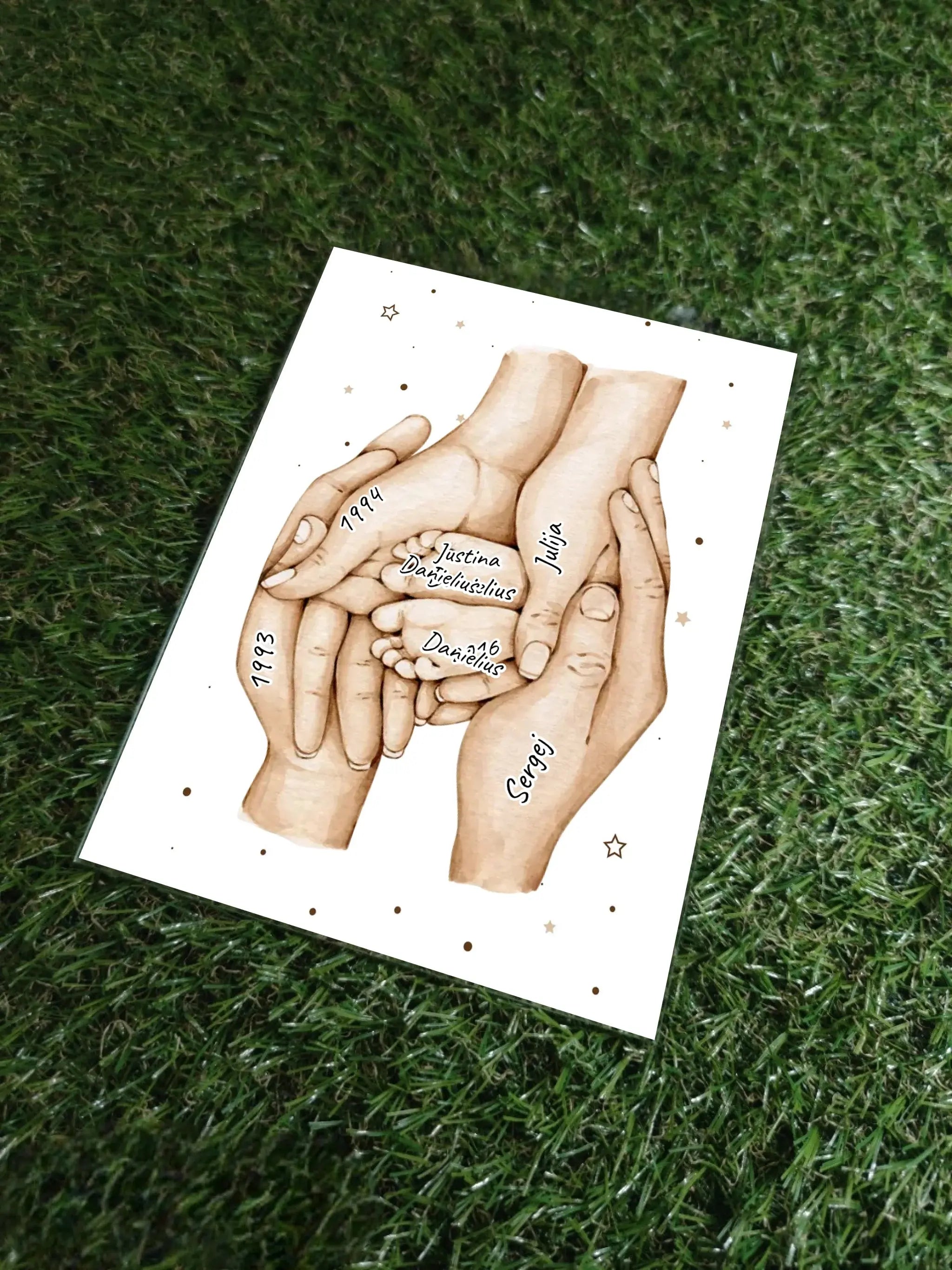 Personalizuotas stiklinis posteris su šeimos narių rankomis, 1-3 vaikai SMRN-005