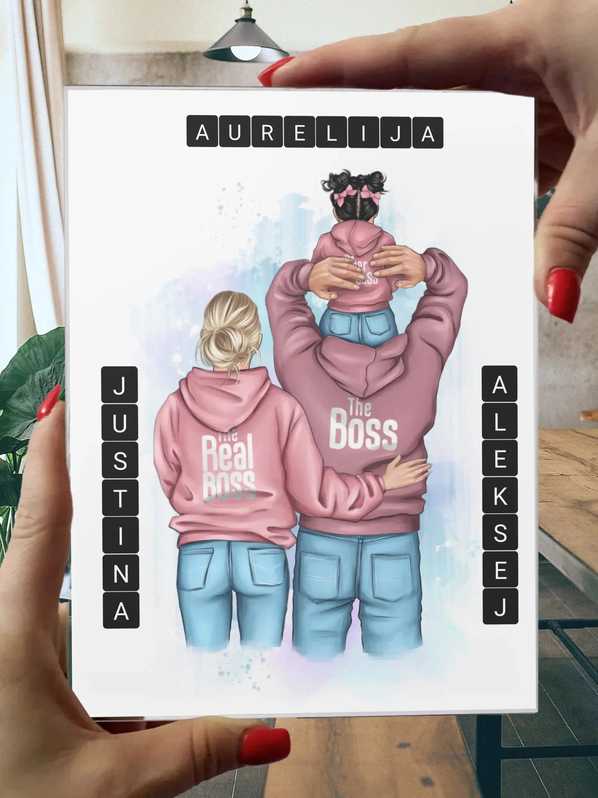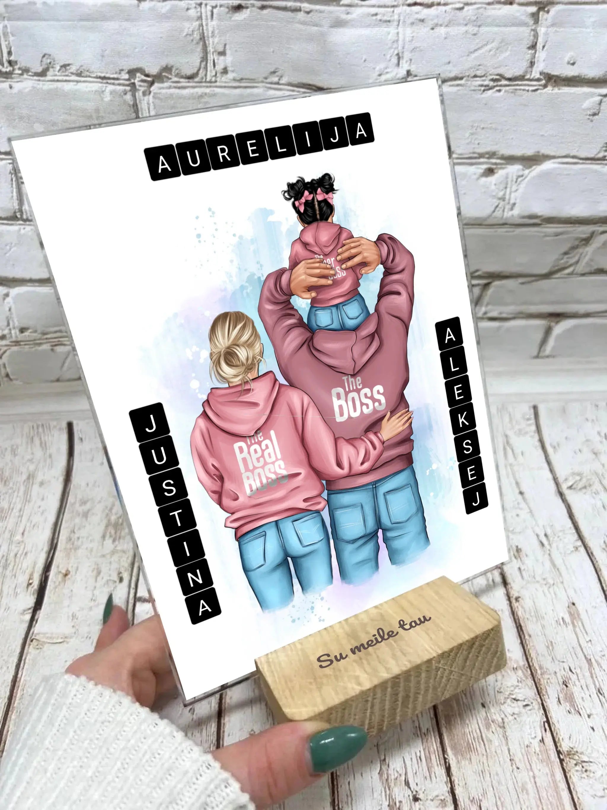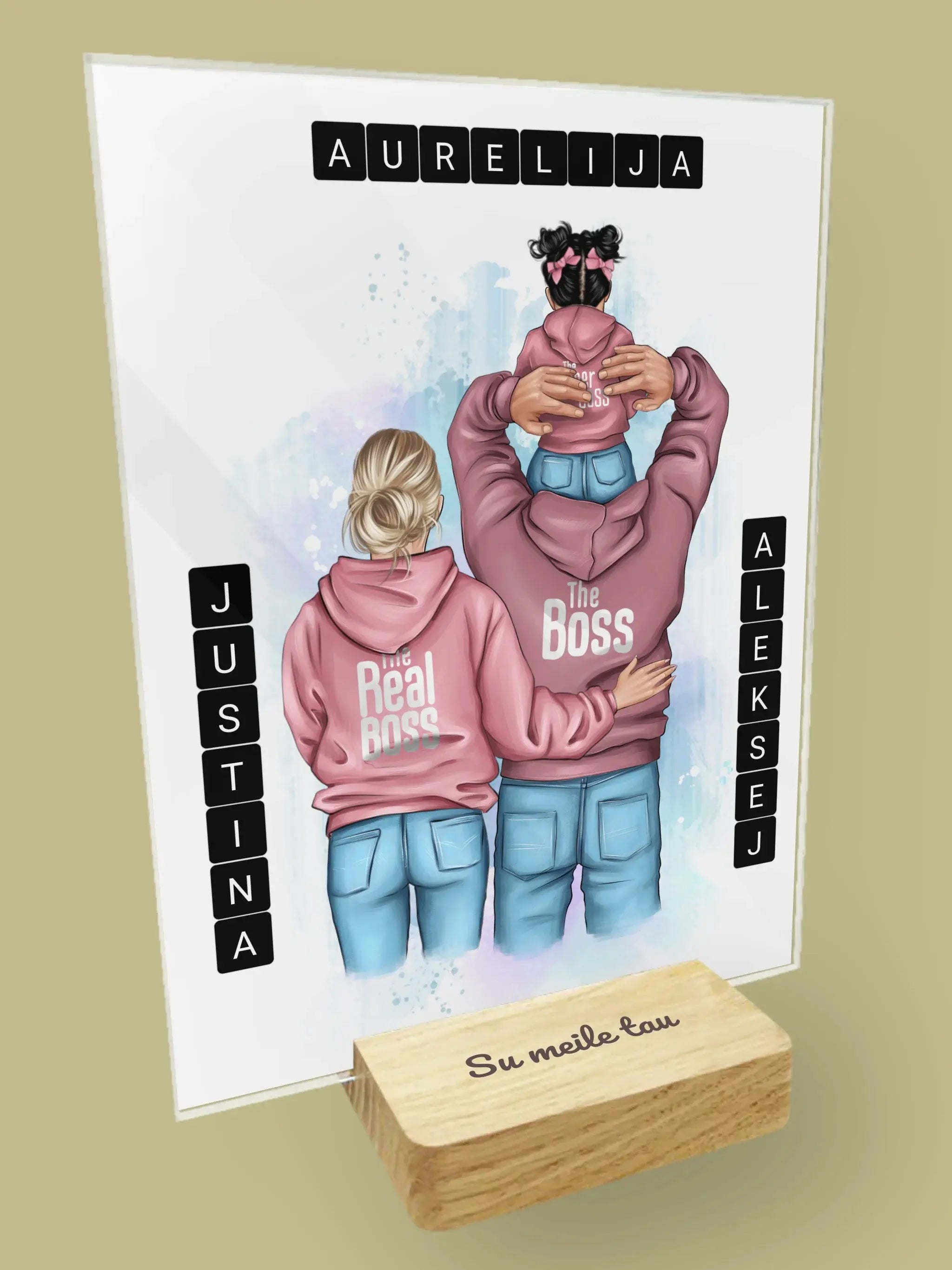 Personalizuotas "Tikra boso šeima" iliustracija su vaiku ant stiklo