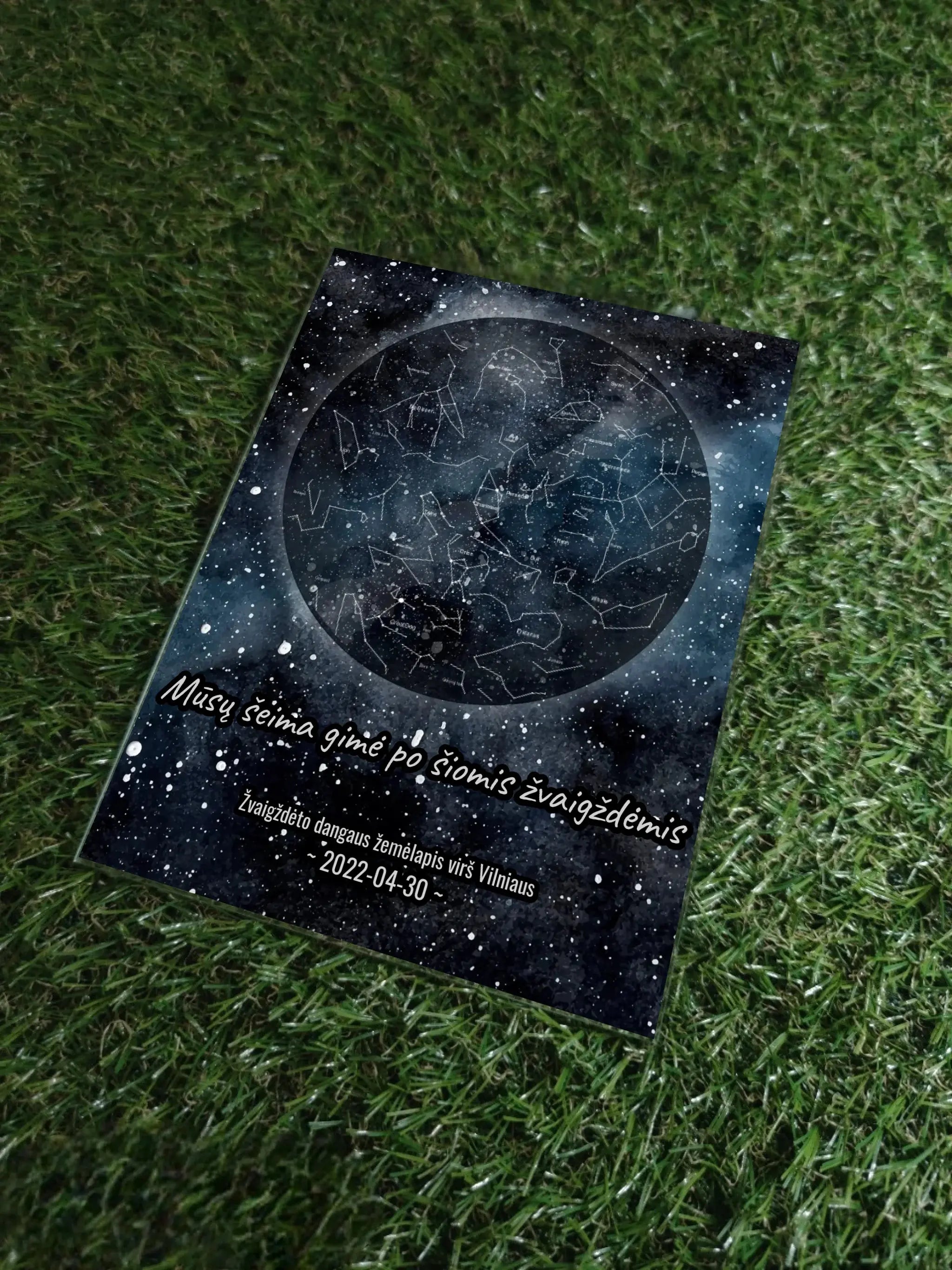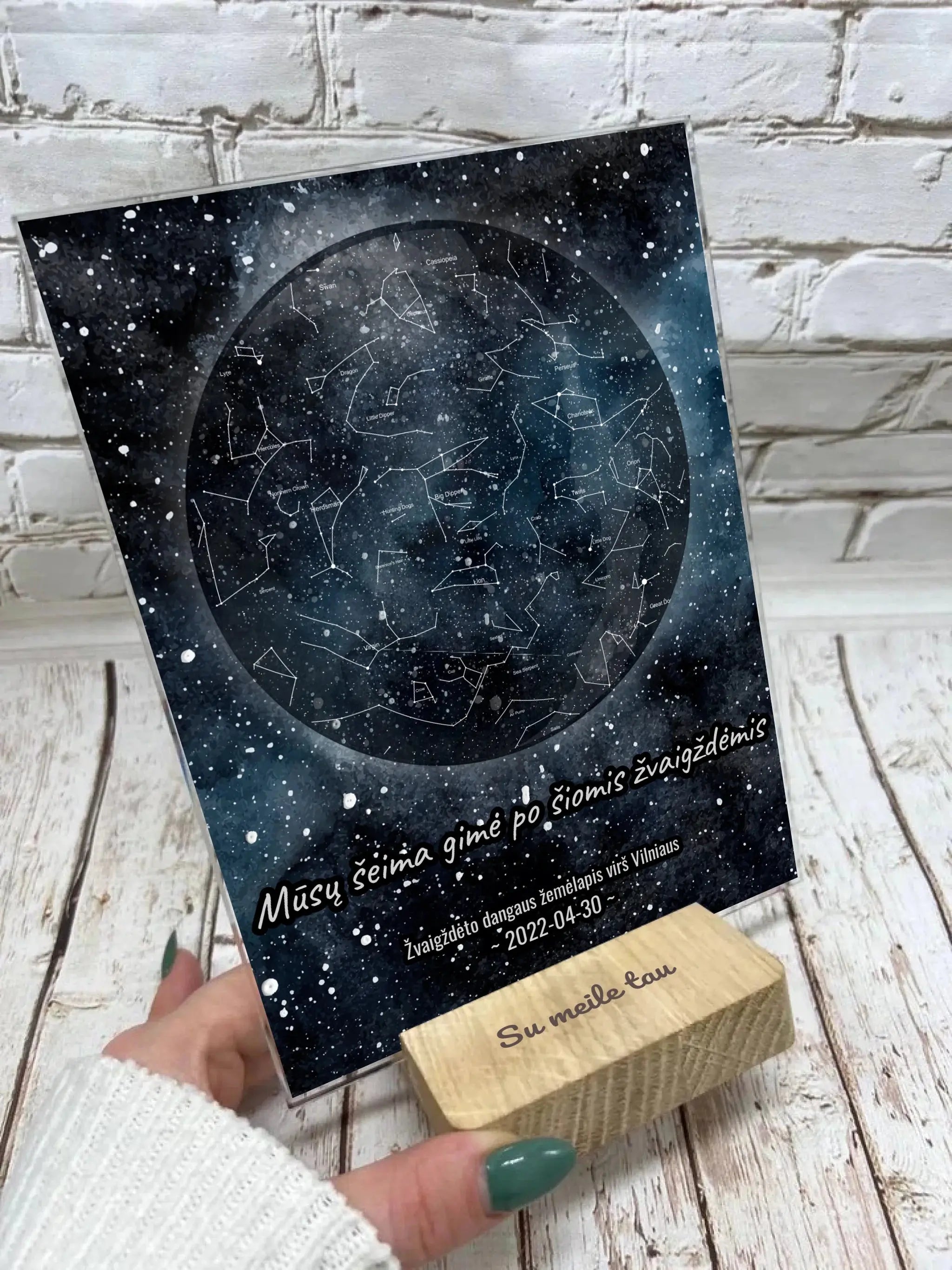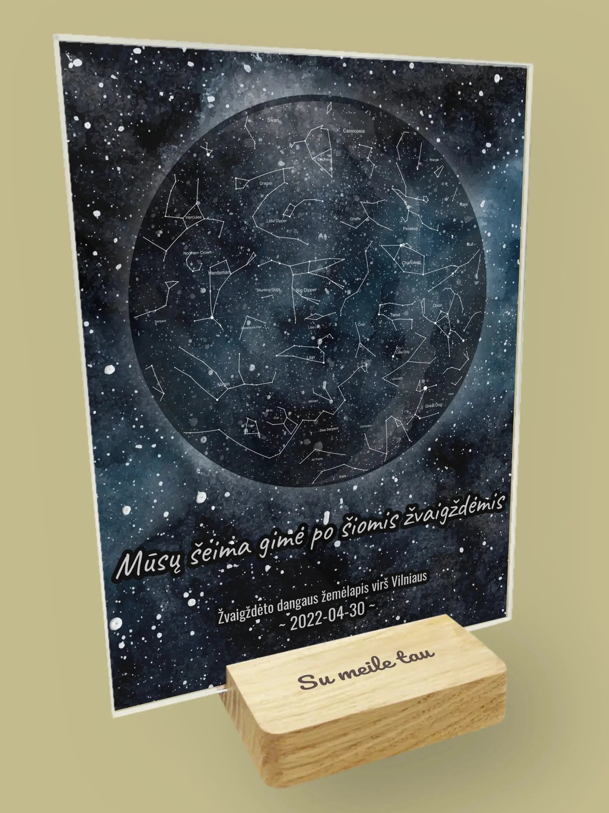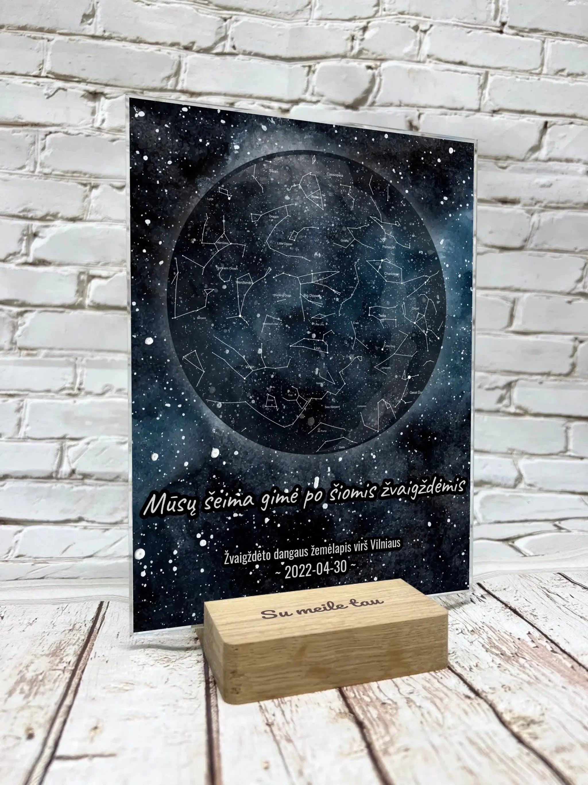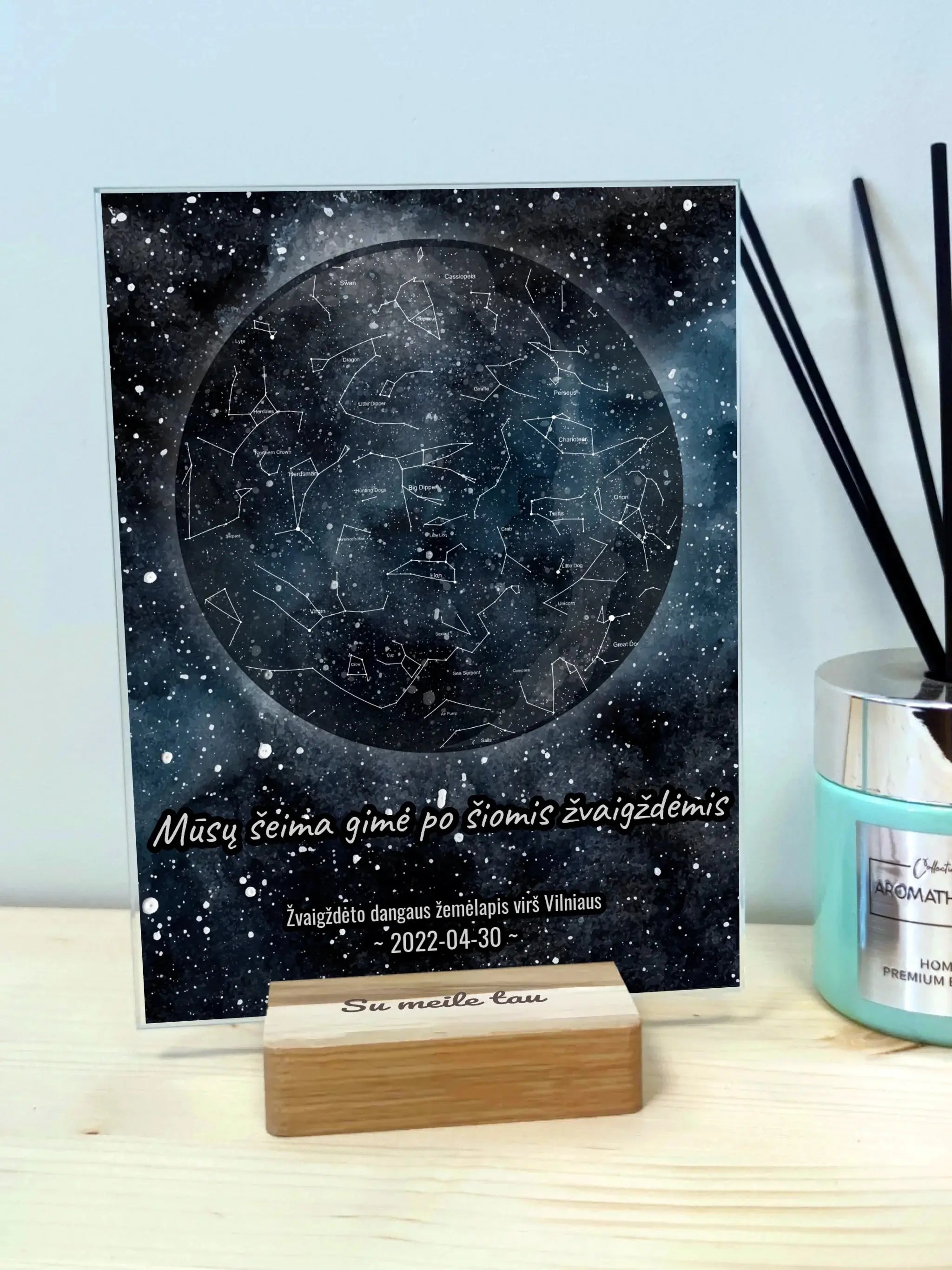 Personalizuotas žvaigždžių žemėlapis, stiklinis posteris.