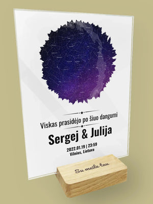Personalizuotas žvaigždžių žemėlapis, stiklinis posteris.